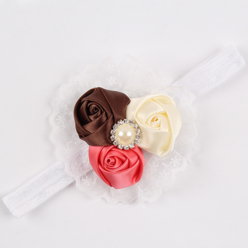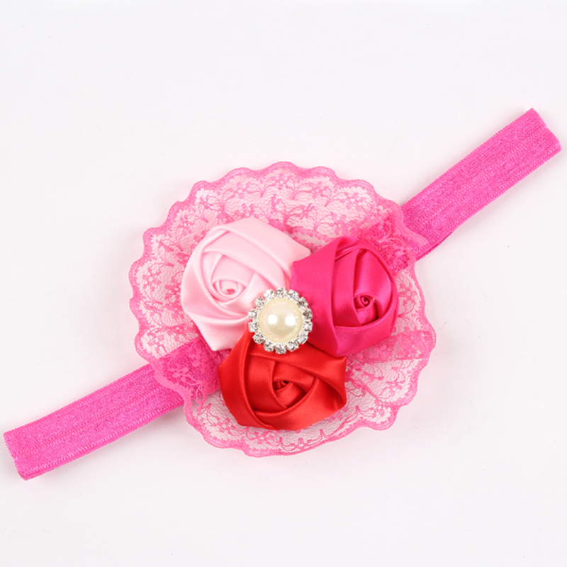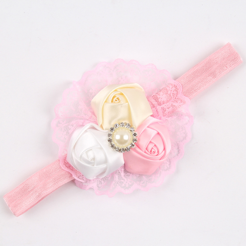 Newborn Headwear Kids Flower Headband Pink Lace Hair Bands Girl Felt Flower Scarf Hair Accessories w-033