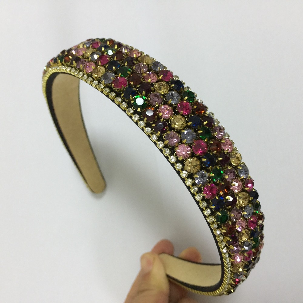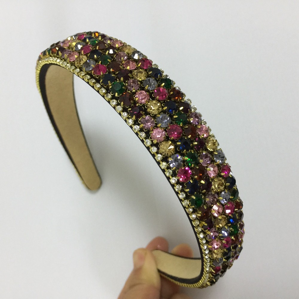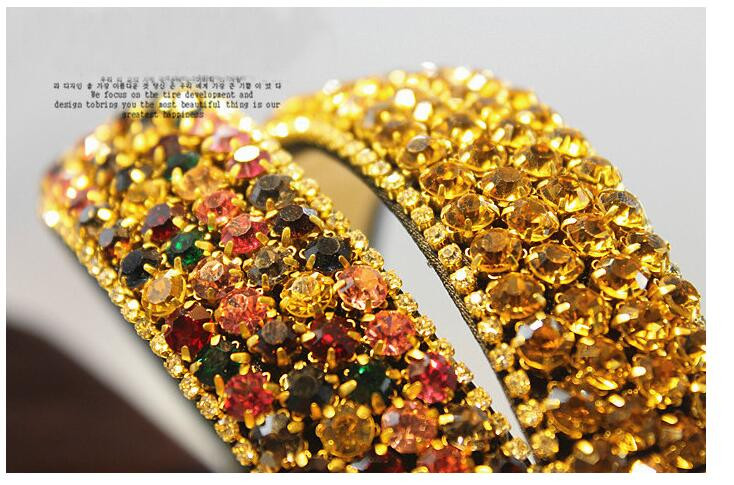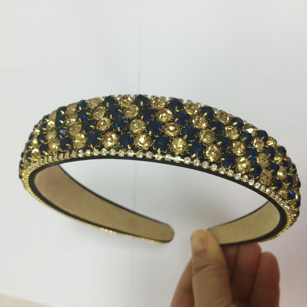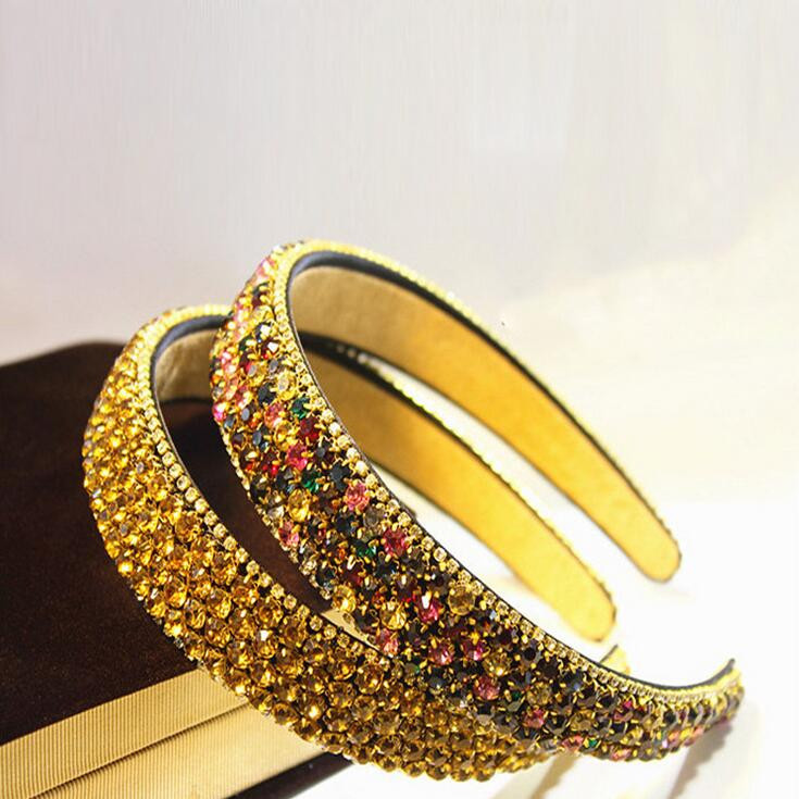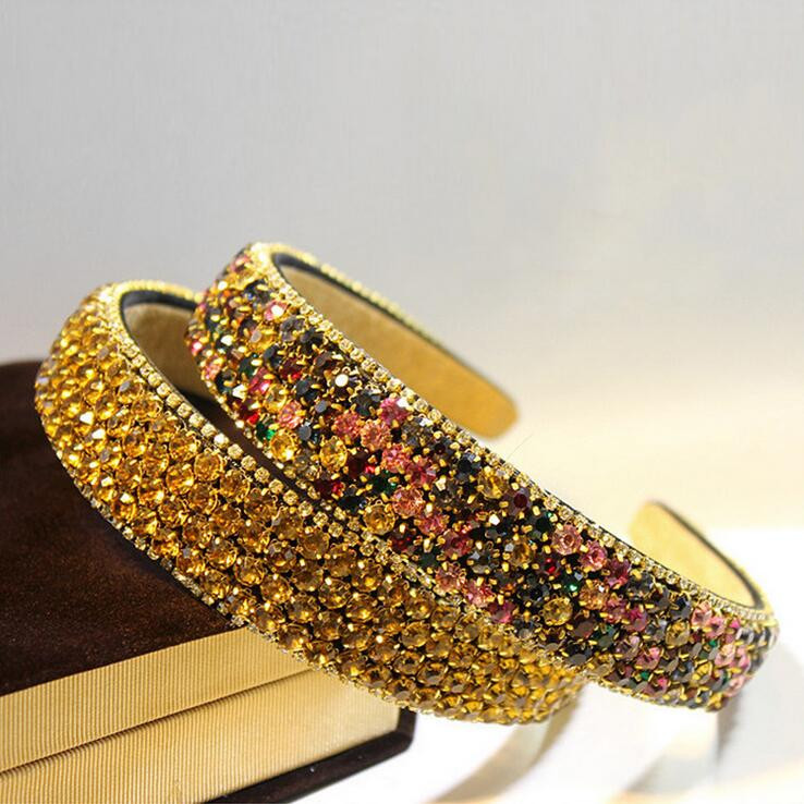PJ.SDZM Luxury Gemstone Hair Bands Aurstria Rhinestone Headband Bridal Crystal Broad Brimmed Hair Accessory 4Colors Gift Mother