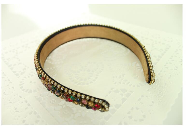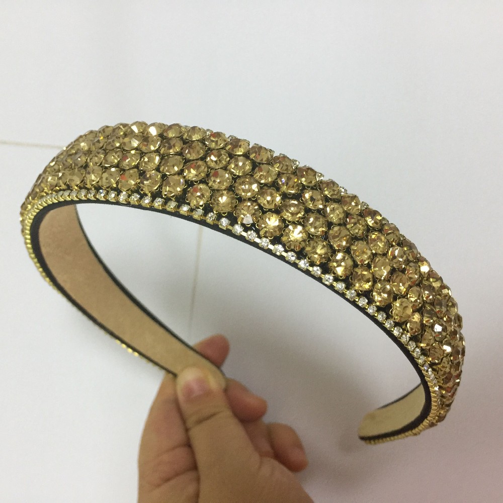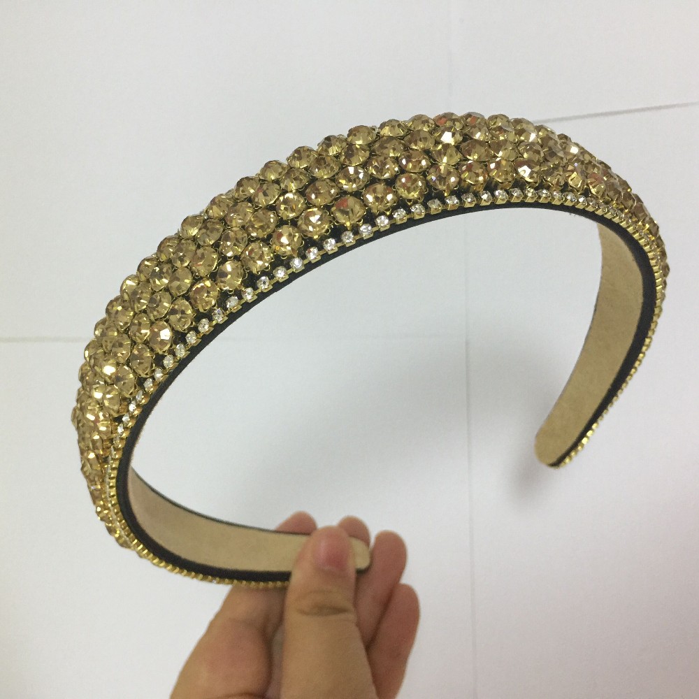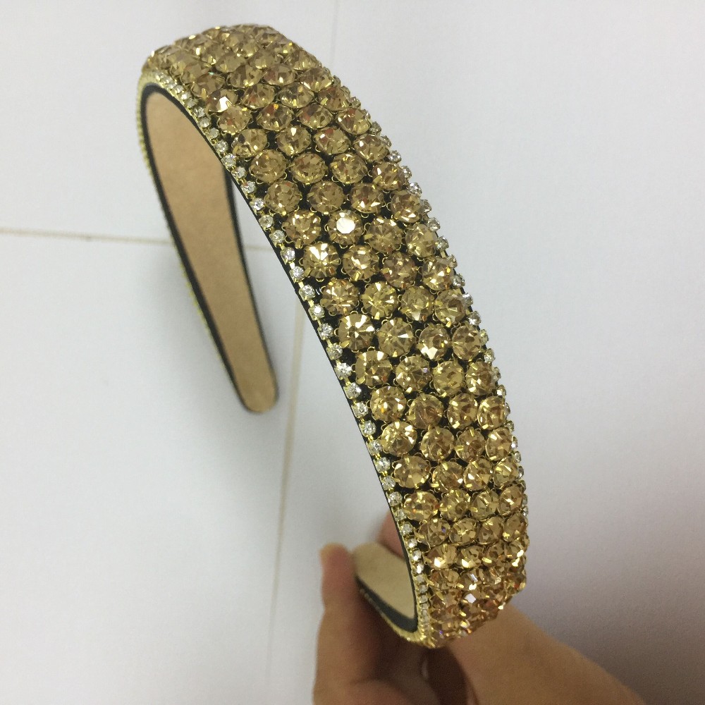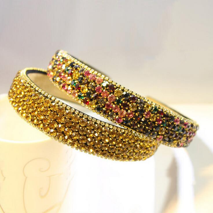 PJ.SDZM Luxury Gemstone Hair Bands Aurstria Rhinestone Headband Bridal Crystal Broad Brimmed Hair Accessory 4Colors Gift Mother