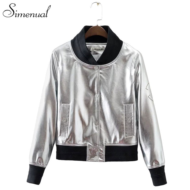 PU leather 2017 female jacket metallic silver short coat fashion new slim women jackets coats autumn winter clothing outwear hot
