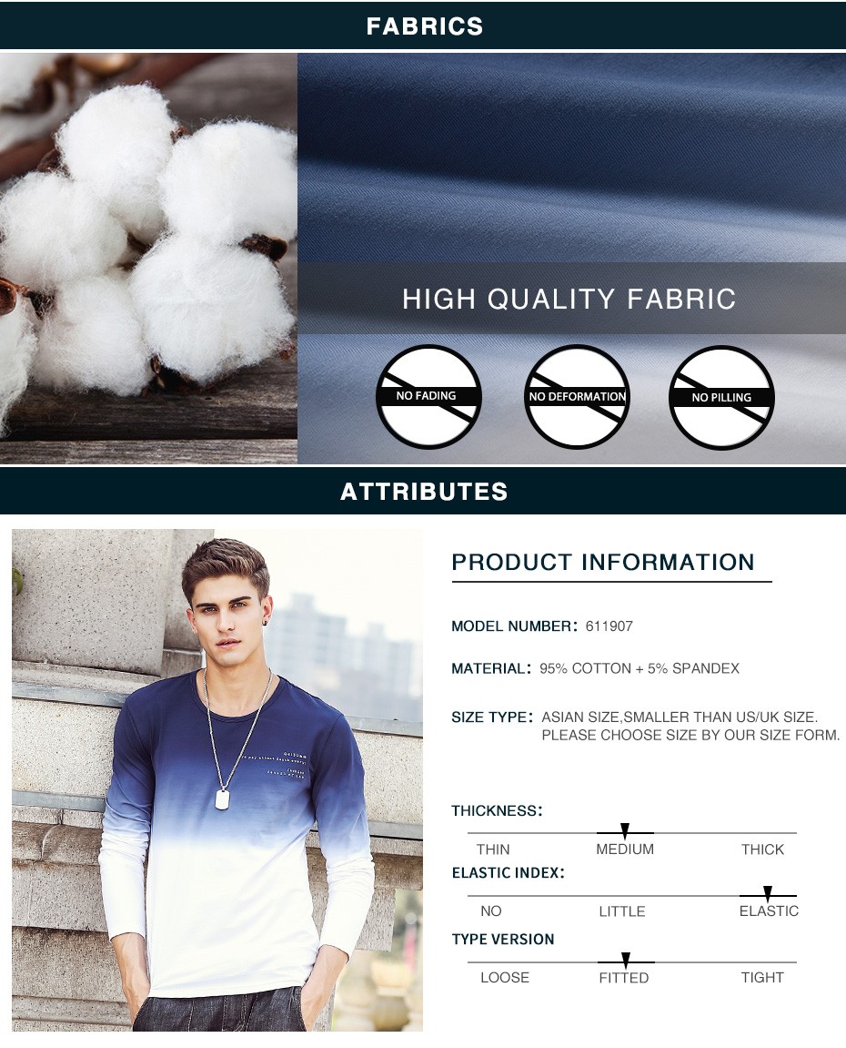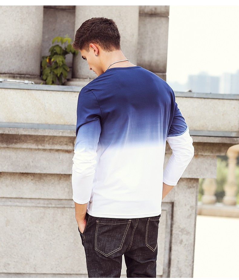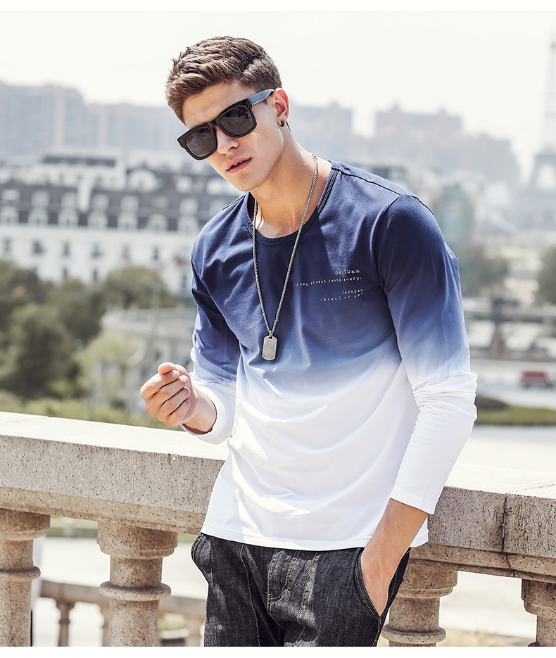 Pioneer Camp 2017 New Arrive Mens T Shirts Fashion O-Neck casual Long Sleeve T-Shirt Gradient band Clothing T Shirt Homme 611907