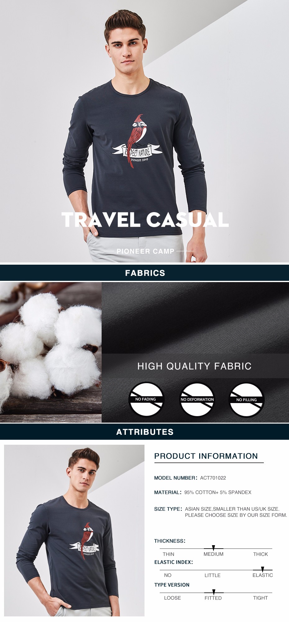 Pioneer Camp New arrival men T-shirt brand clothing bird printing simple comfortable T shirt male casual tee Tshirt ACT701022