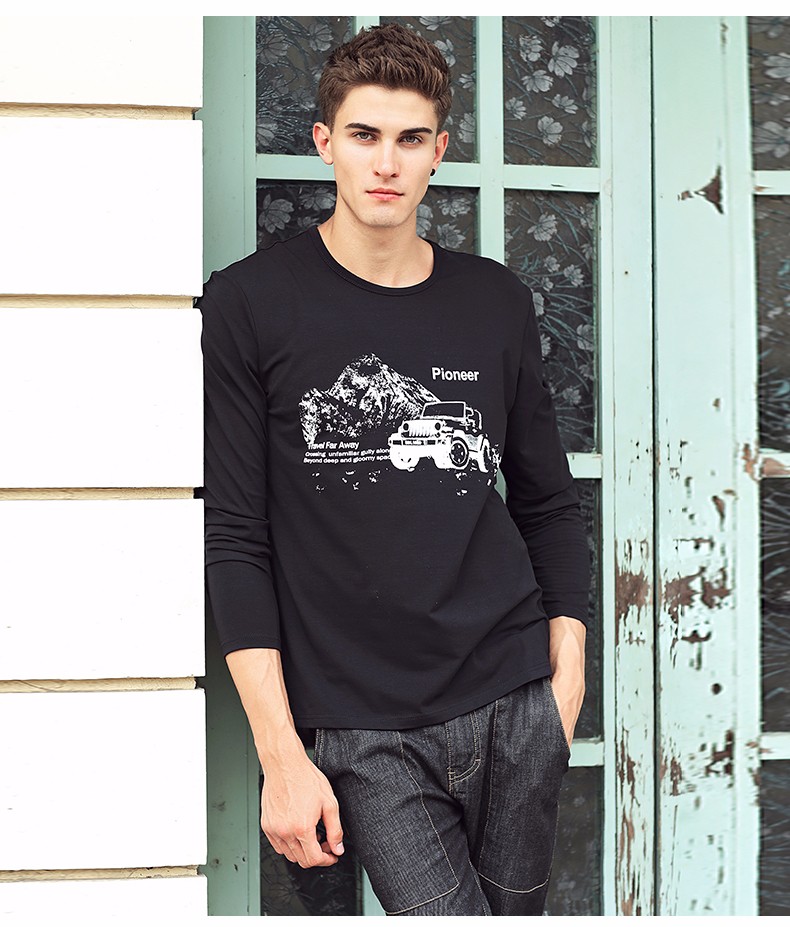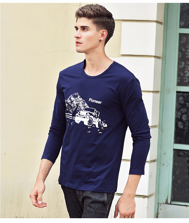 Pioneer Camp long sleeve T shirt men 2017 new fashion brand clothing high quality comfort cotton elastic casual male t-shirt