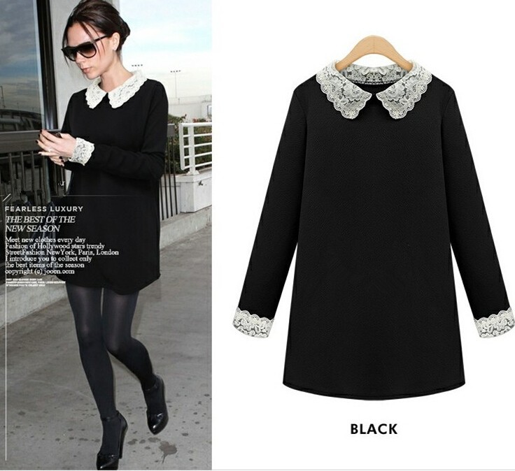 Plus-Size-M-5XL-2015-New-Fashion-Black-Women-Lace-Collar-Casual-Dresses-Loose-With-White-Carve-patte-32278777659