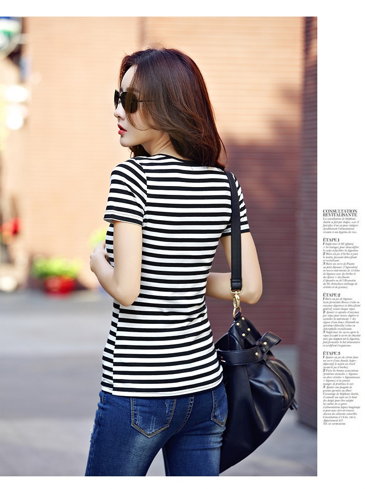 Plus Size Women T-shirt New 2016 Summer Fashion Casual Striped short Sleeve t shirt Ladies' elegant black white Shirt Tops