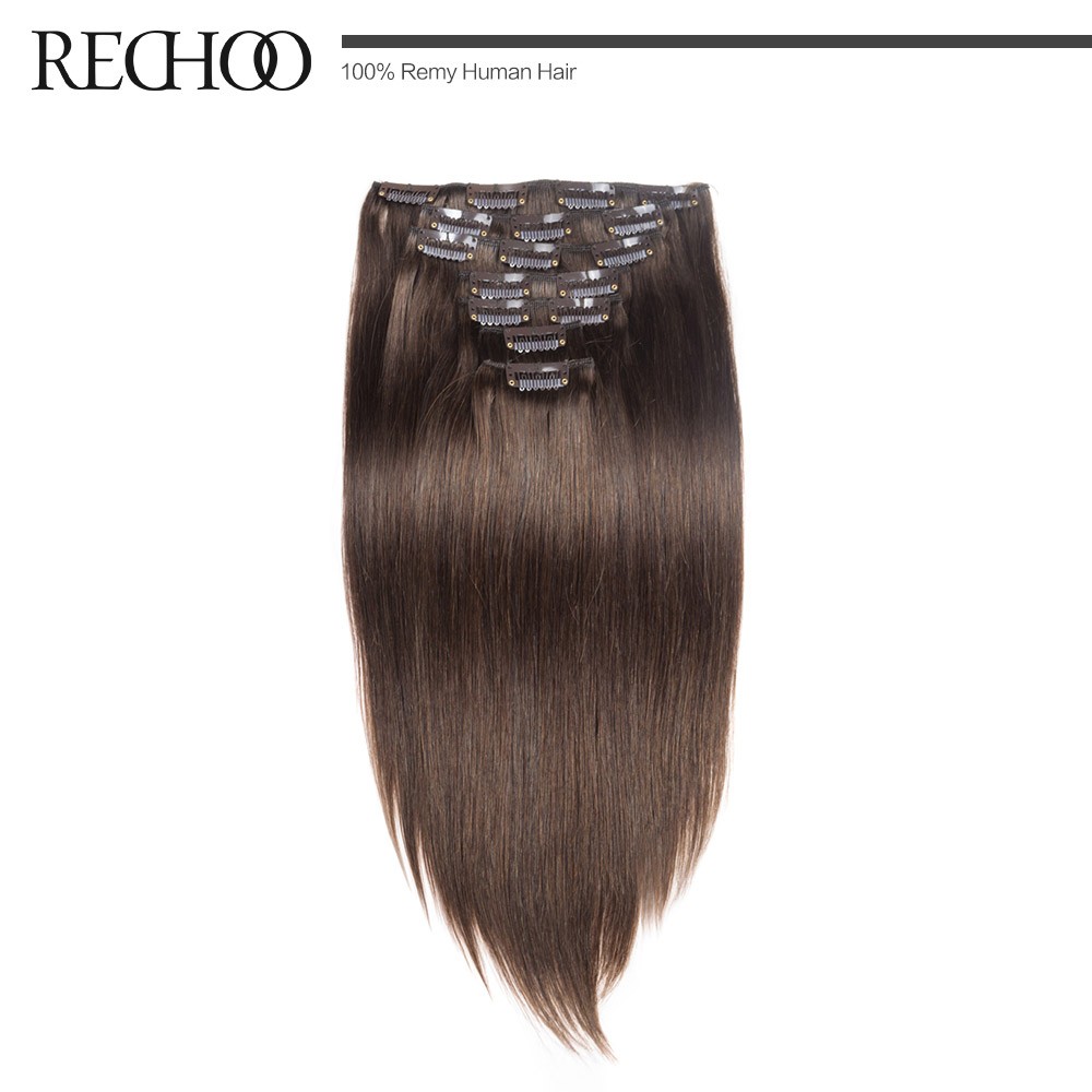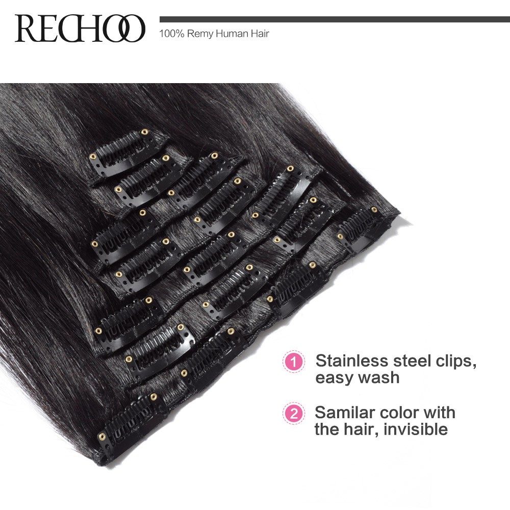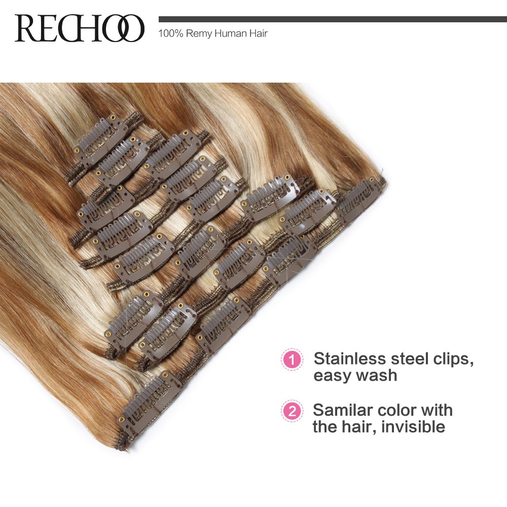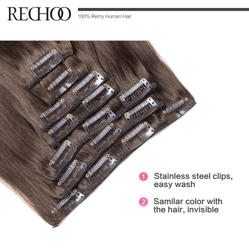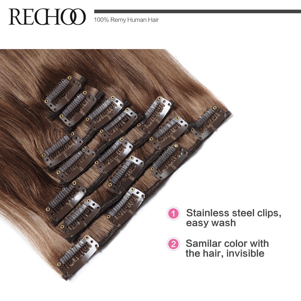 Rechoo Remy Clip In Hair Extensions 7 Piecese Set Human Hair Clip In Cheveux Extensions Clip On Natural Hair Cabelo Tic Tac