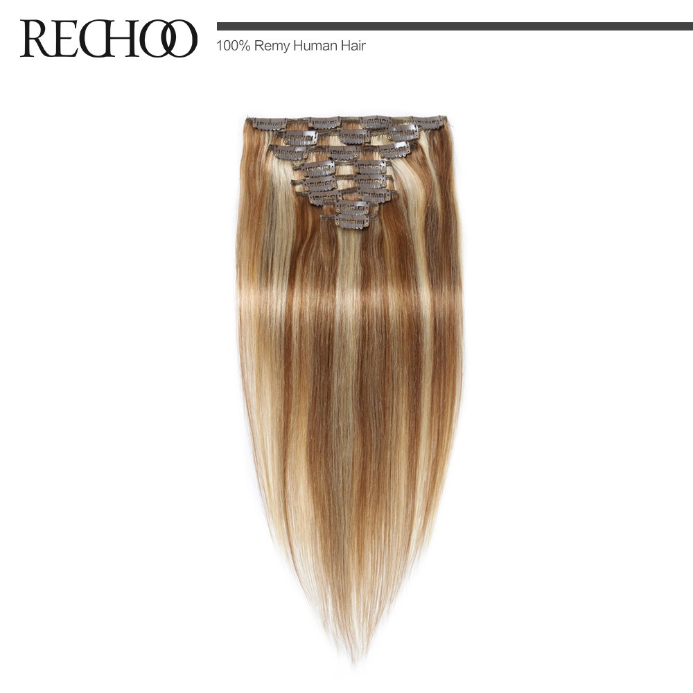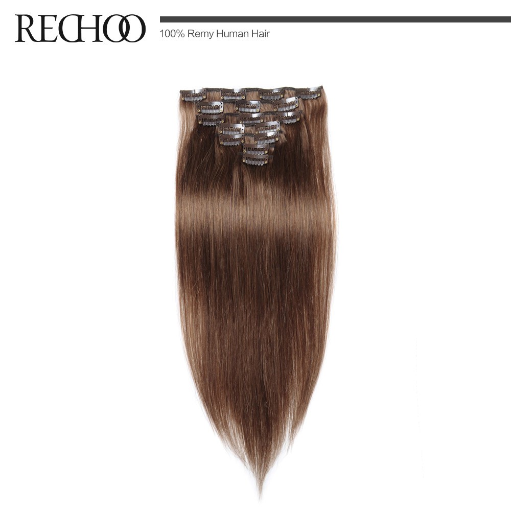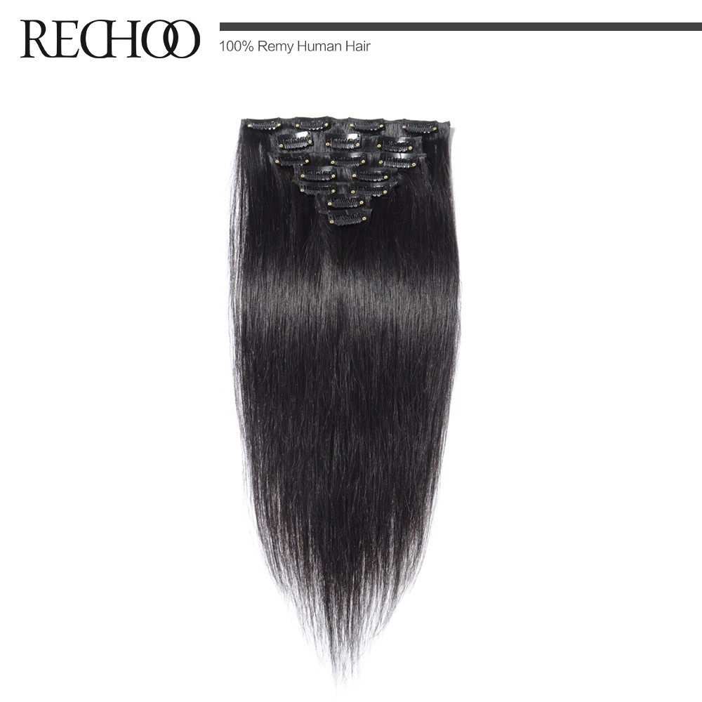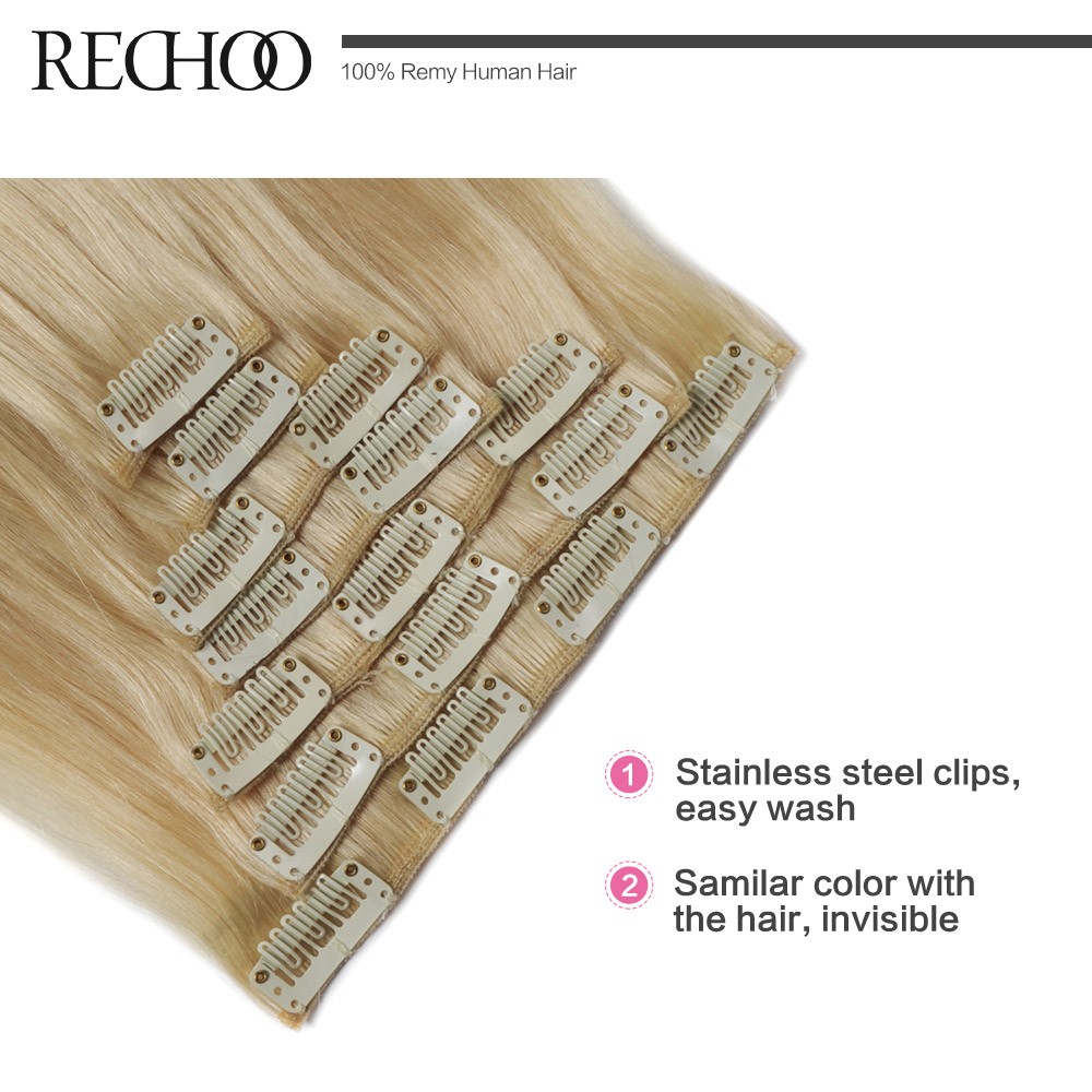 Rechoo Remy Clip In Hair Extensions 7 Piecese Set Human Hair Clip In Cheveux Extensions Clip On Natural Hair Cabelo Tic Tac