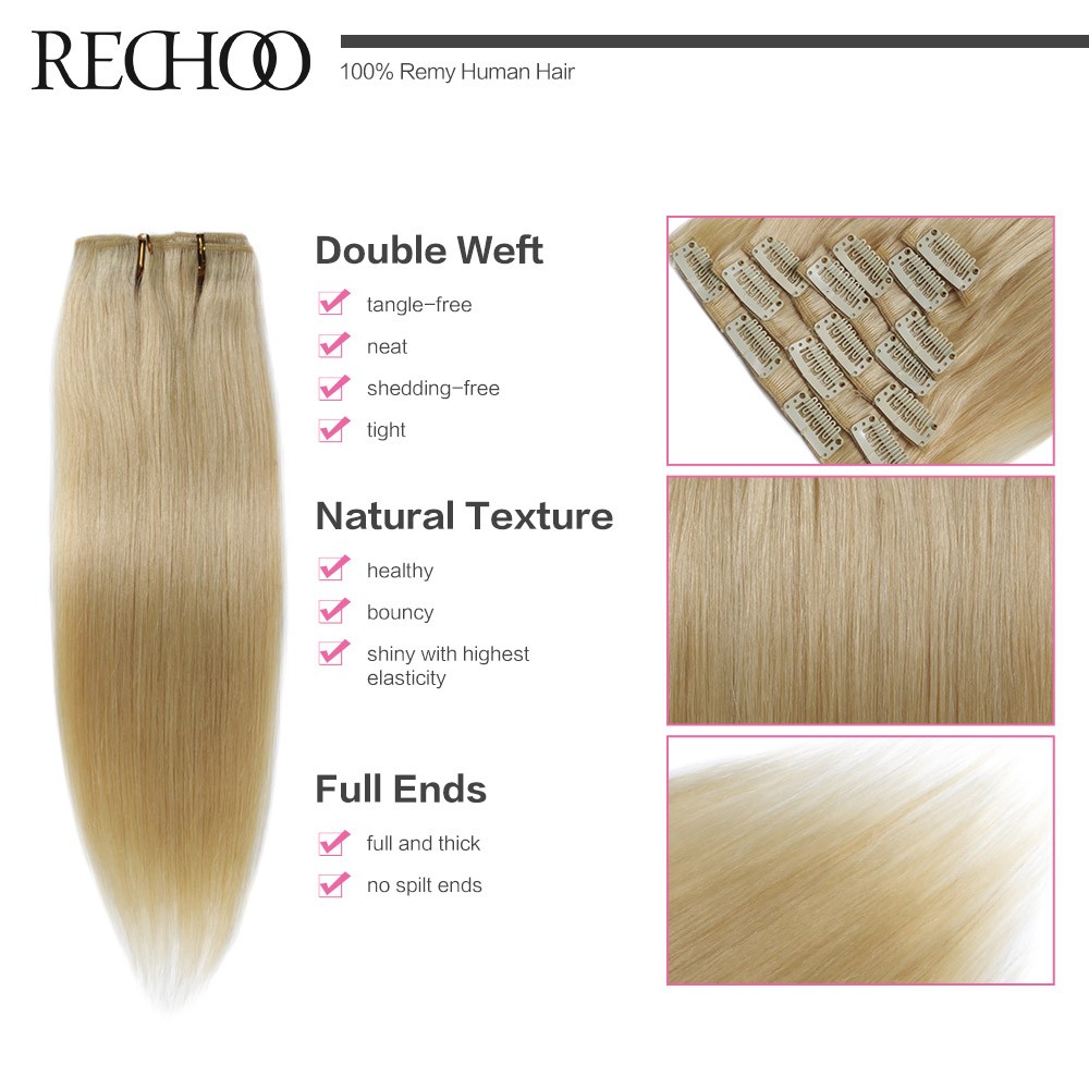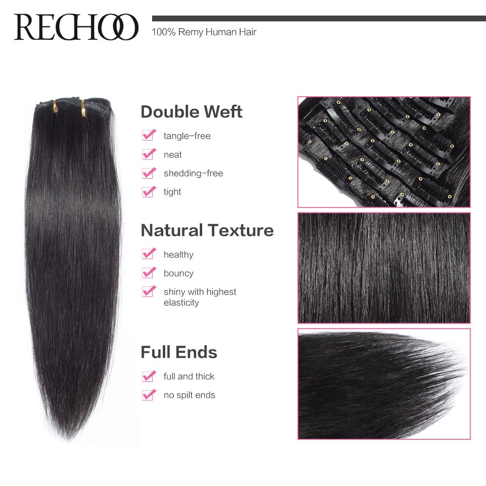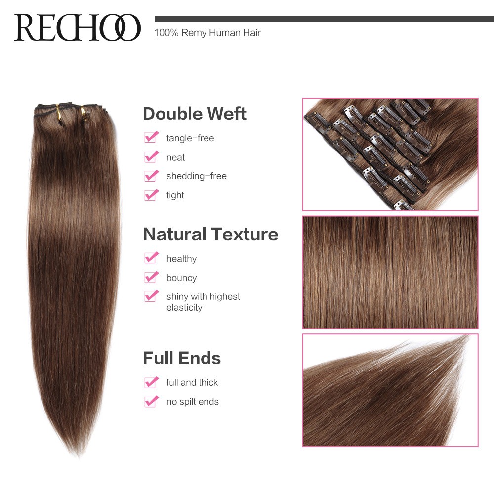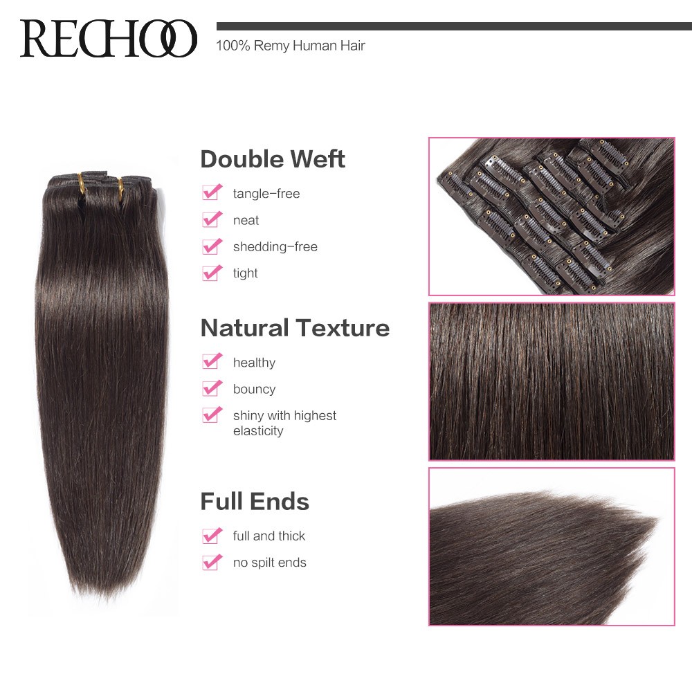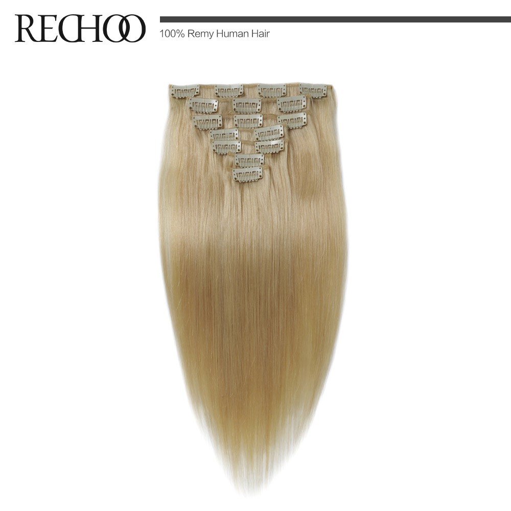 Rechoo Remy Clip In Hair Extensions 7 Piecese Set Human Hair Clip In Cheveux Extensions Clip On Natural Hair Cabelo Tic Tac