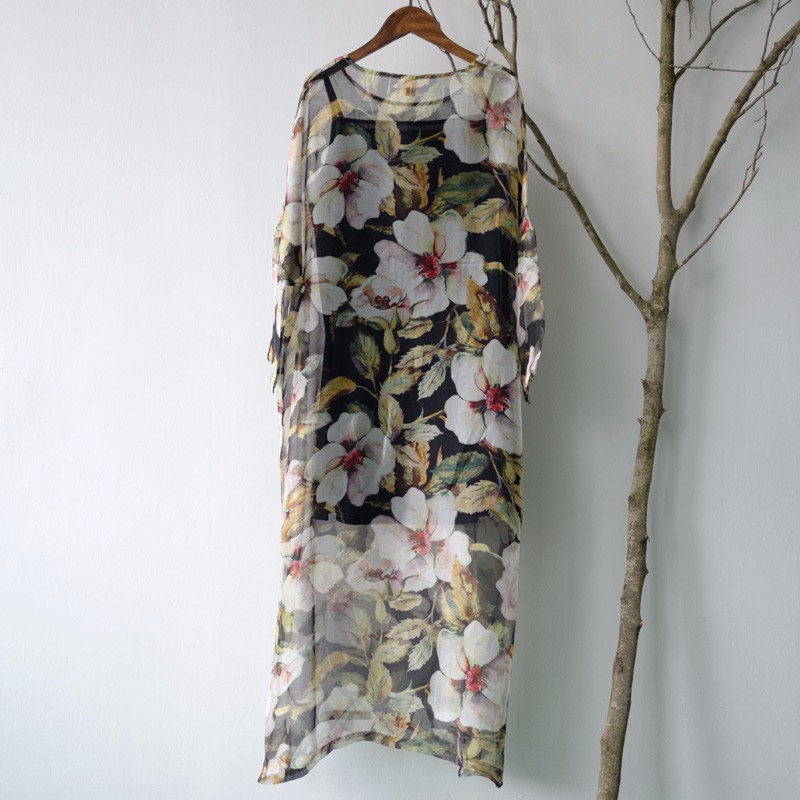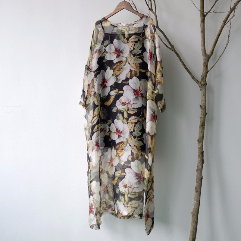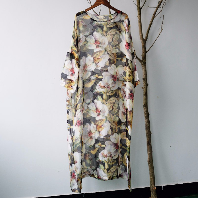 SCUWLINEN 2017 Spring Summer Dresses Women Vintage Print Plus Size Loose Tencel Twinset Women Dress Long Beach Party Dress S155
