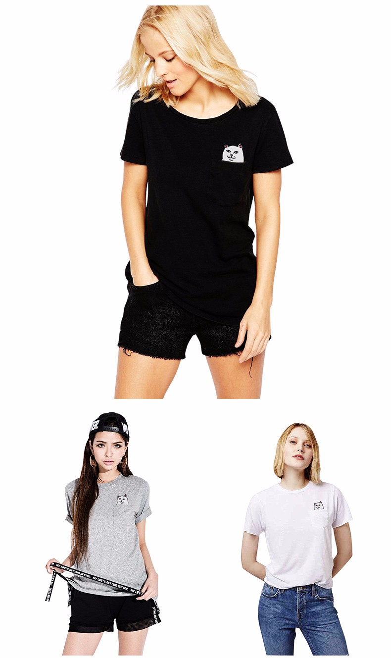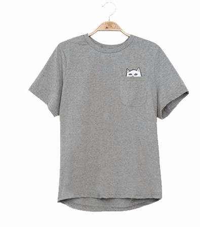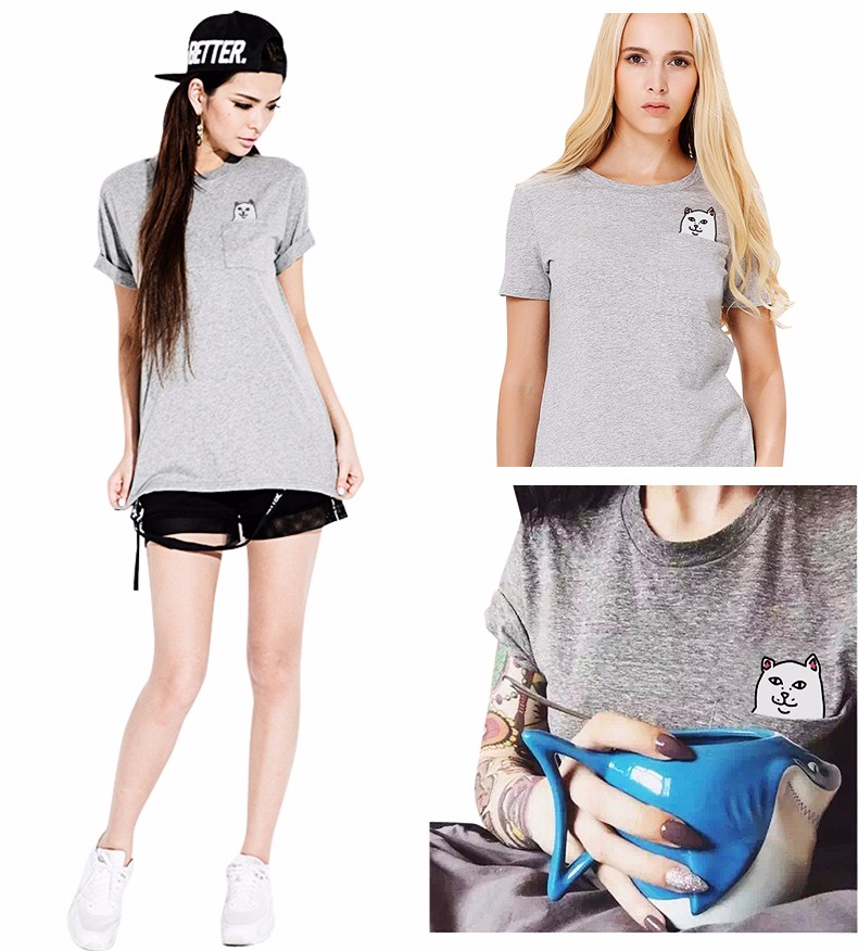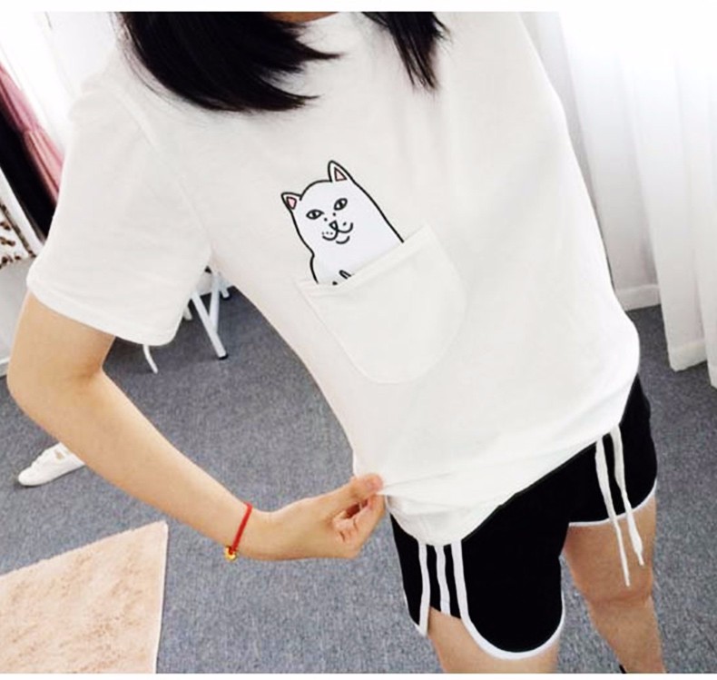 SexeMara 2016 New Summer Pocket Harajuku Cat Lovers Women Top Short-sleeve T shirt  Sweet Style Black/White/Grey Plus Size