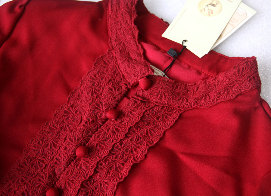 Spring Summer Style Women Dress 2017 Casual Dresses Stand Collar Puff Sleeve High Waist Vestidos Femininos Red Vestido
