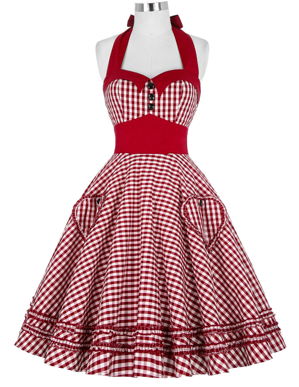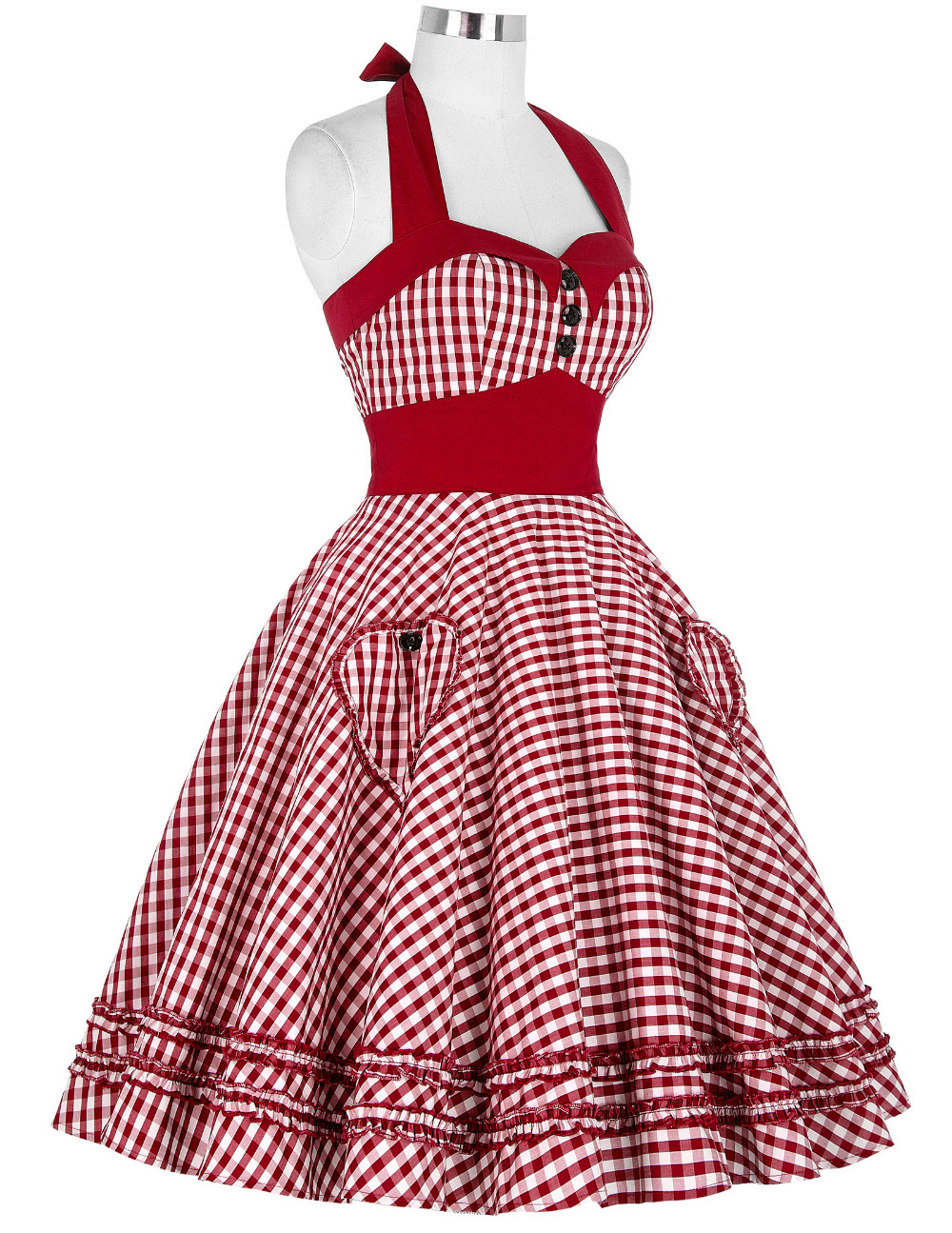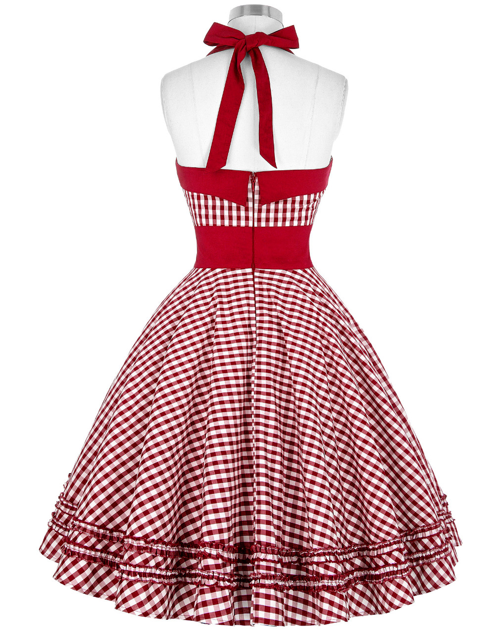 Summer-Style-Women-Dress-2016-Plus-Size-Audrey-Hepburn-Gowns-Plaid-Robe-5039s-60s-Vintage-Rockabilly-32620157219
