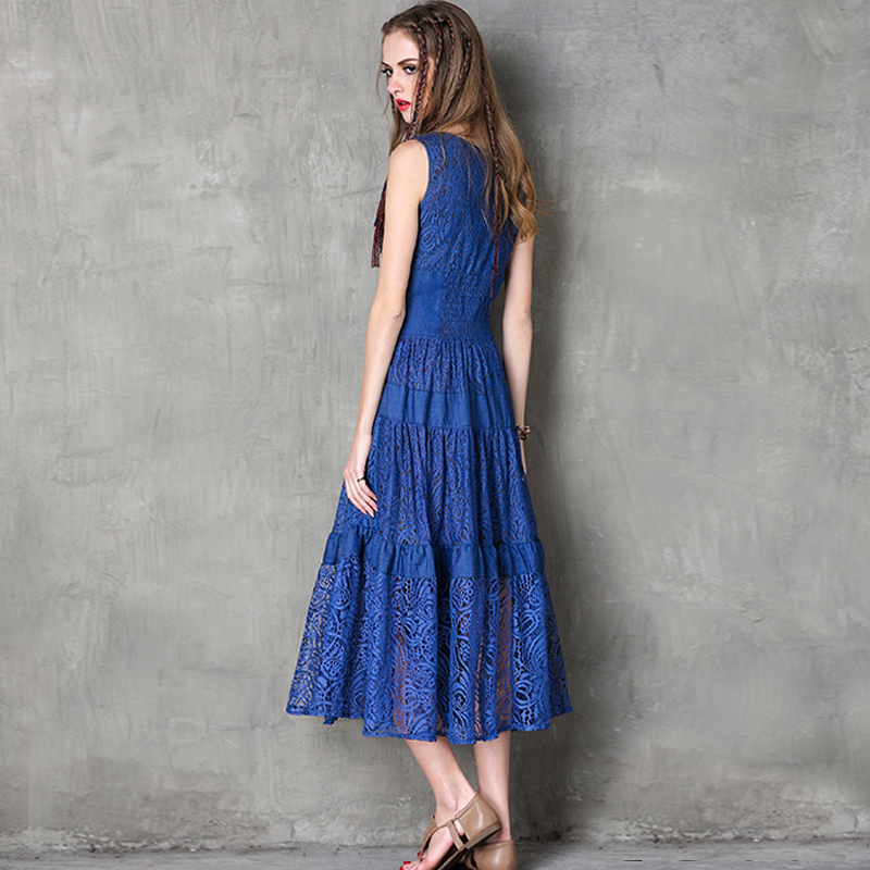 Summer Style Women Dress 2017 Yuzi Vintage New Lace Dresses O-Neck Sleeveless Swing Hem Maxi Vestido A8113 Vestidos Femininos