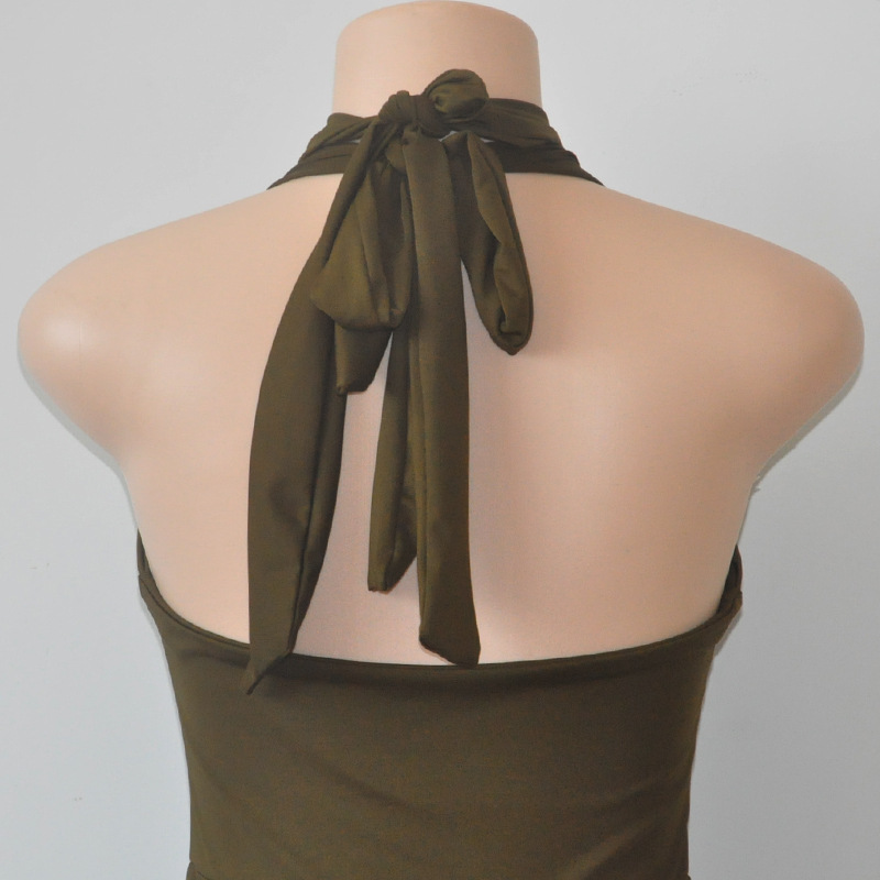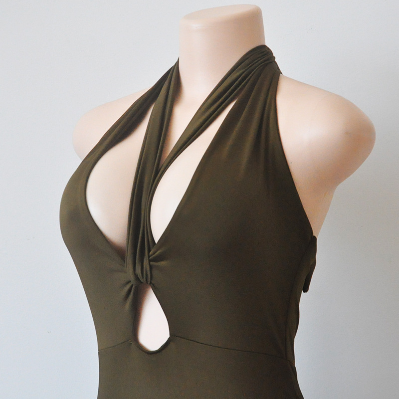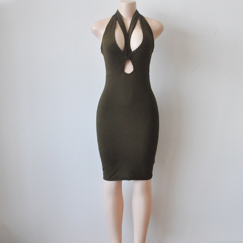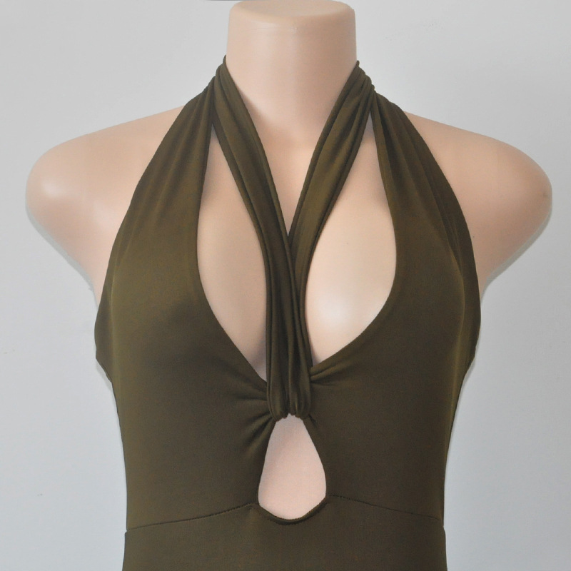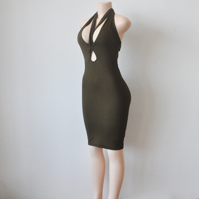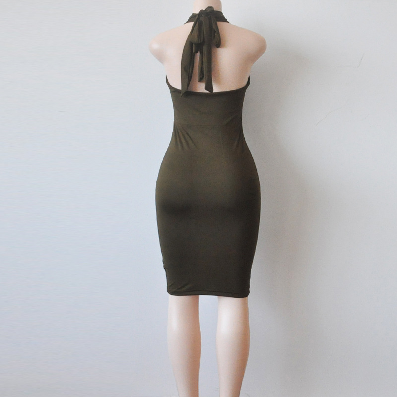 UZZDSS Magic Dressing Women's Halter Deep V Backless Choker Mock Neck Club Evening Party Sexy Bodycon Dress Vestidos Olive Khaki