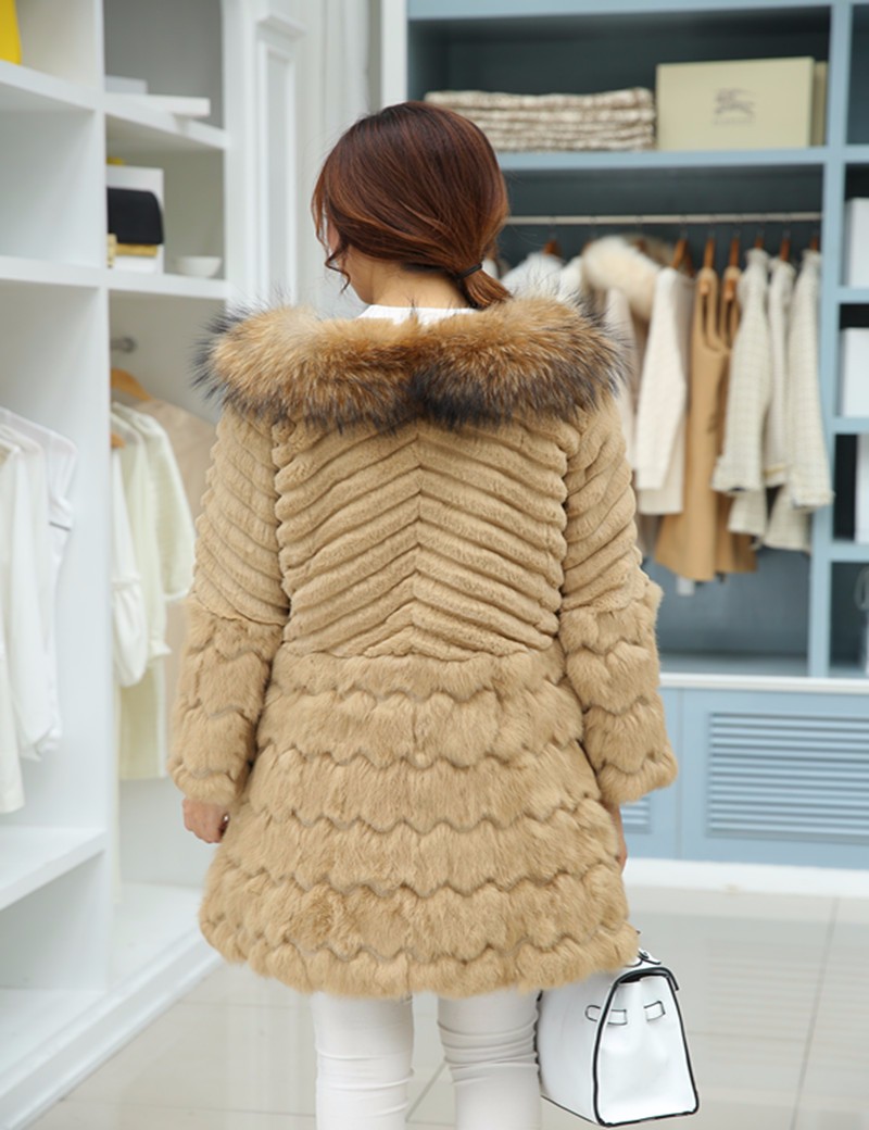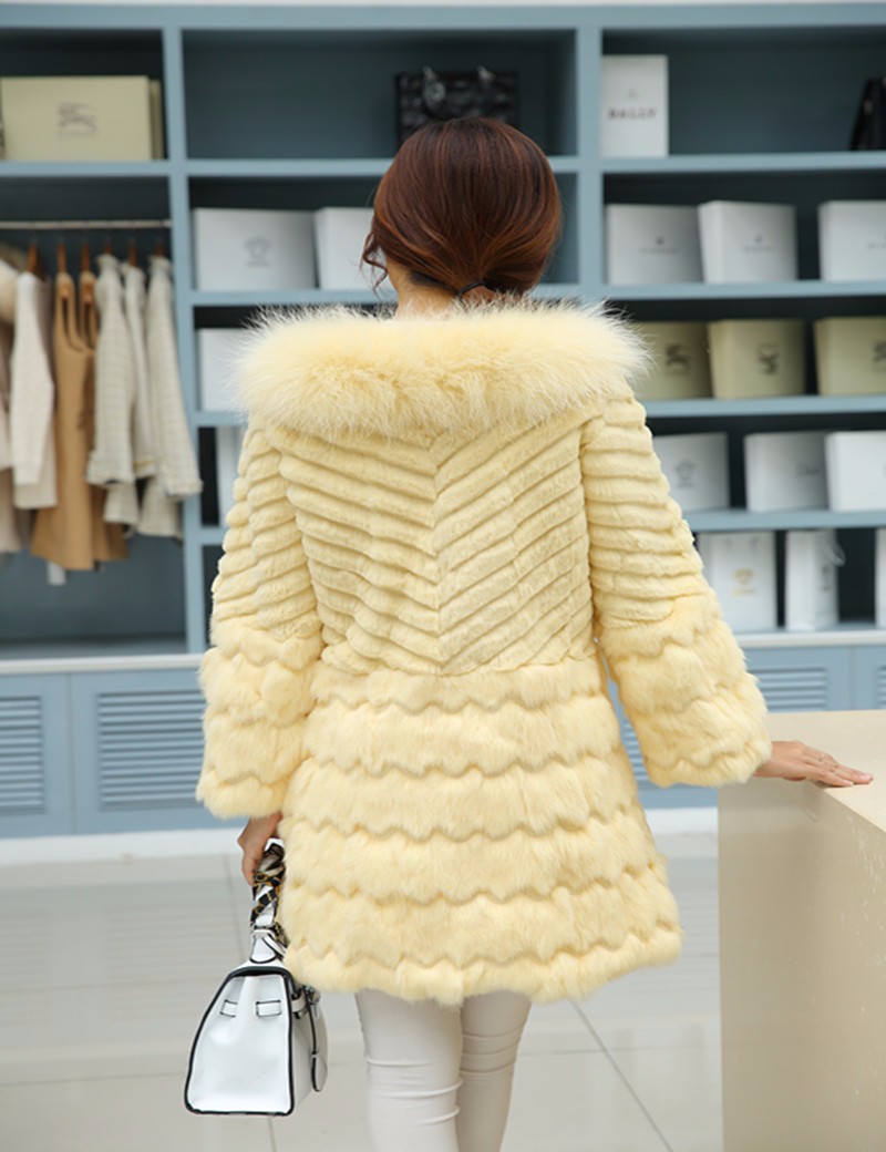 Upgrades Real Fur 100% Rabbit Skin 80 Cm Length Autumn Winter Sexy Lady's Favorite Female Coat  Sample FQ13020-2