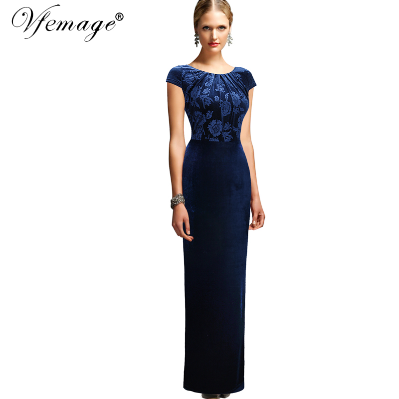 Vfemage Womens Elegant Floral Frill Velvet Formal Evening Party Mother of Bride Special Occasion Bodycon Long Maxi Dress 3963