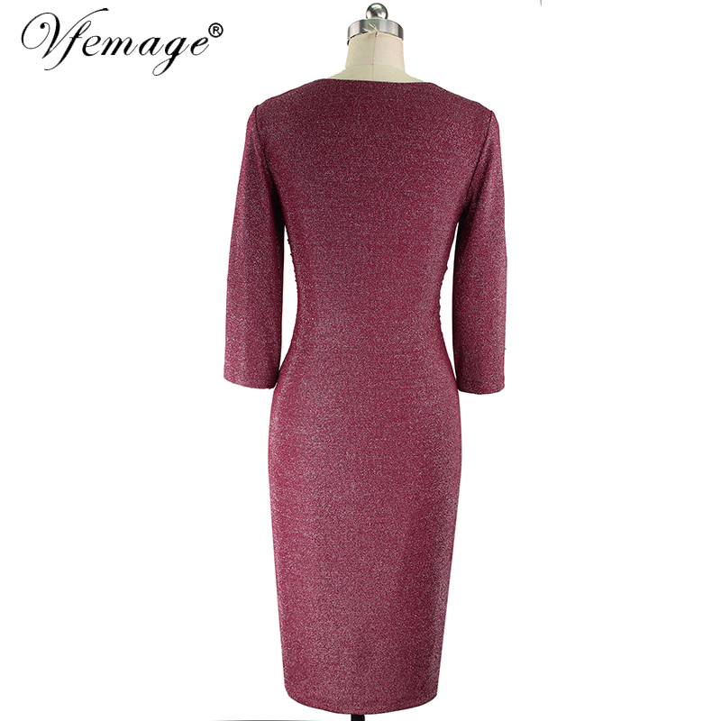 Vfemage Womens Elegant Ruched Drape Sexy V Back Side Split Zipper Lady Casual Work Office Party Bodycon Mid-Calf Midi Dress 6211USD 12.99-25.99/piece