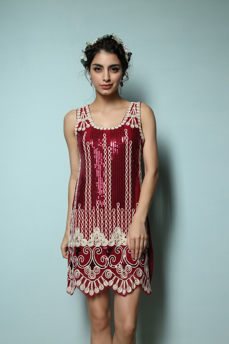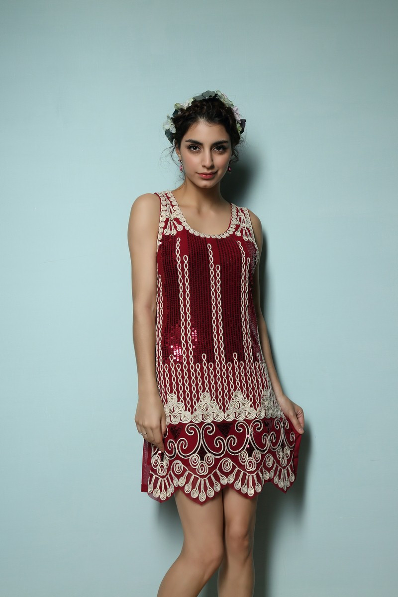 2016 Hot Sale 1920s Flapper Style Vintage Sequins Dress Paisley Charleston Gatsby Party Embroidery Tank Dress Small