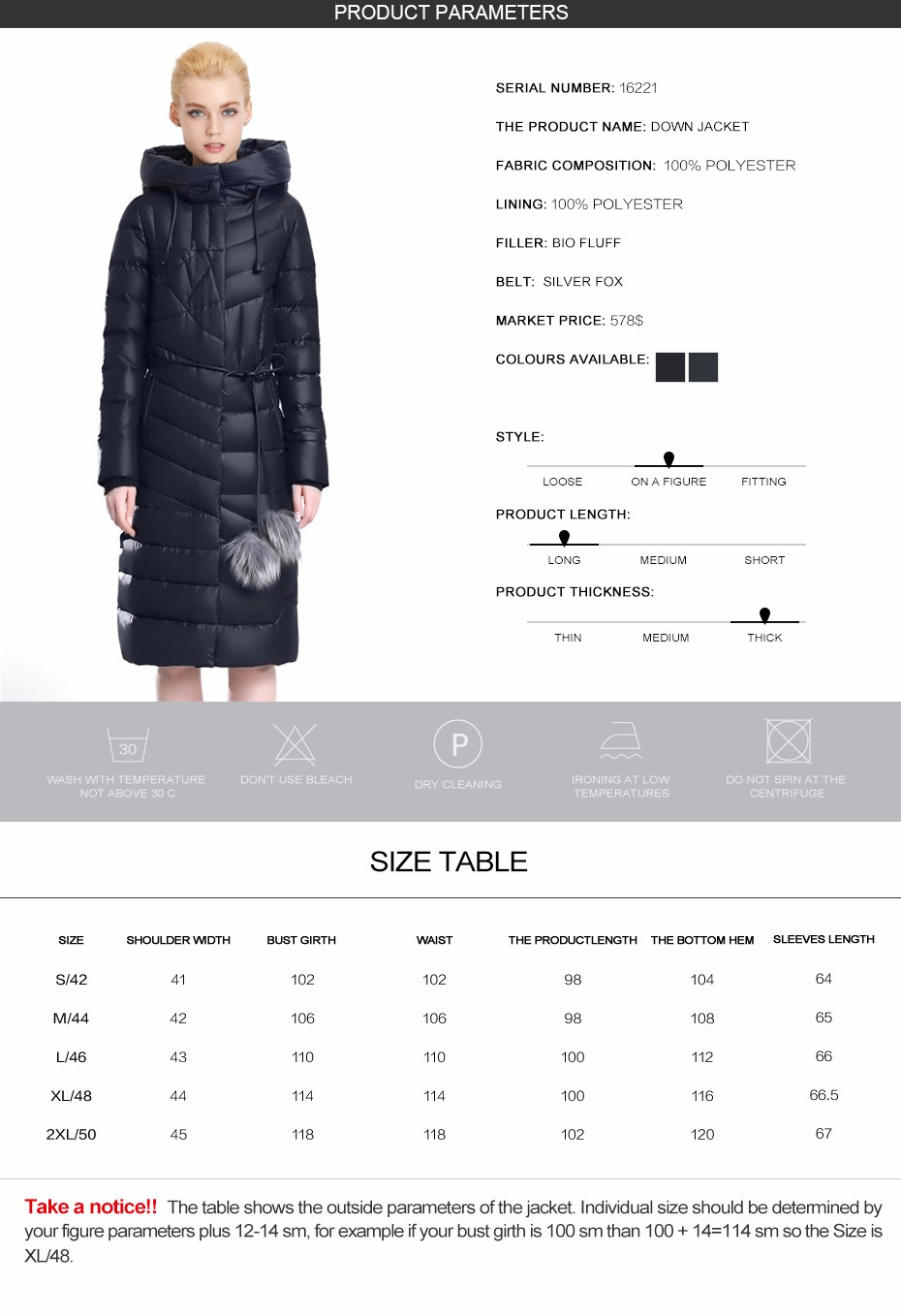 • Decoration: Fur,Pockets,Sashes,Zippers