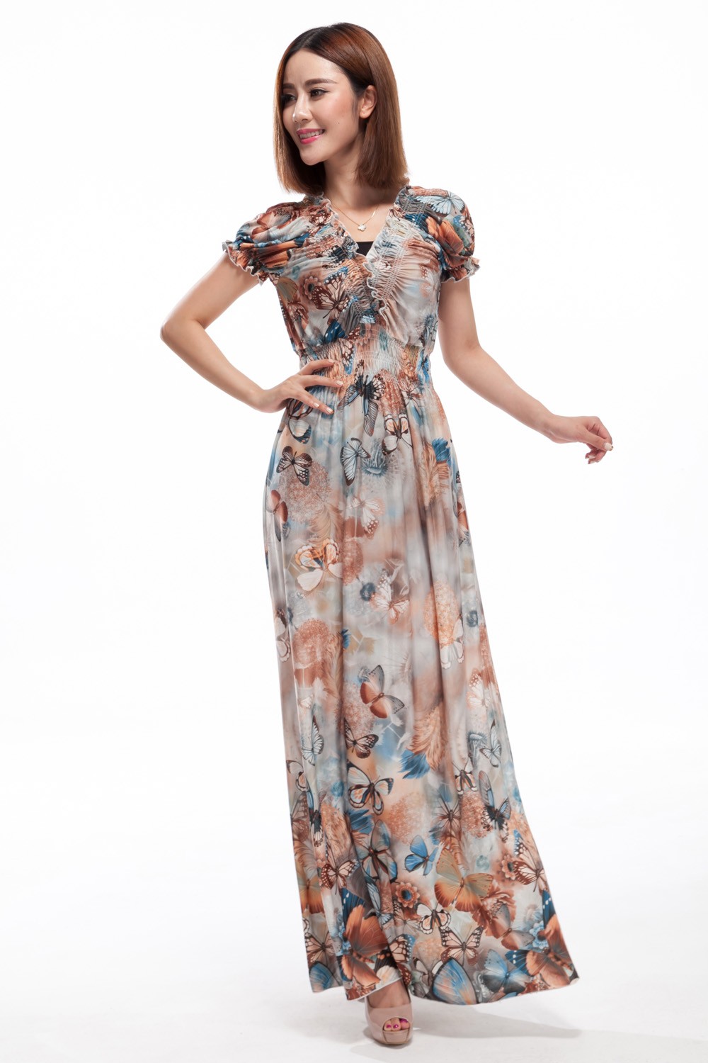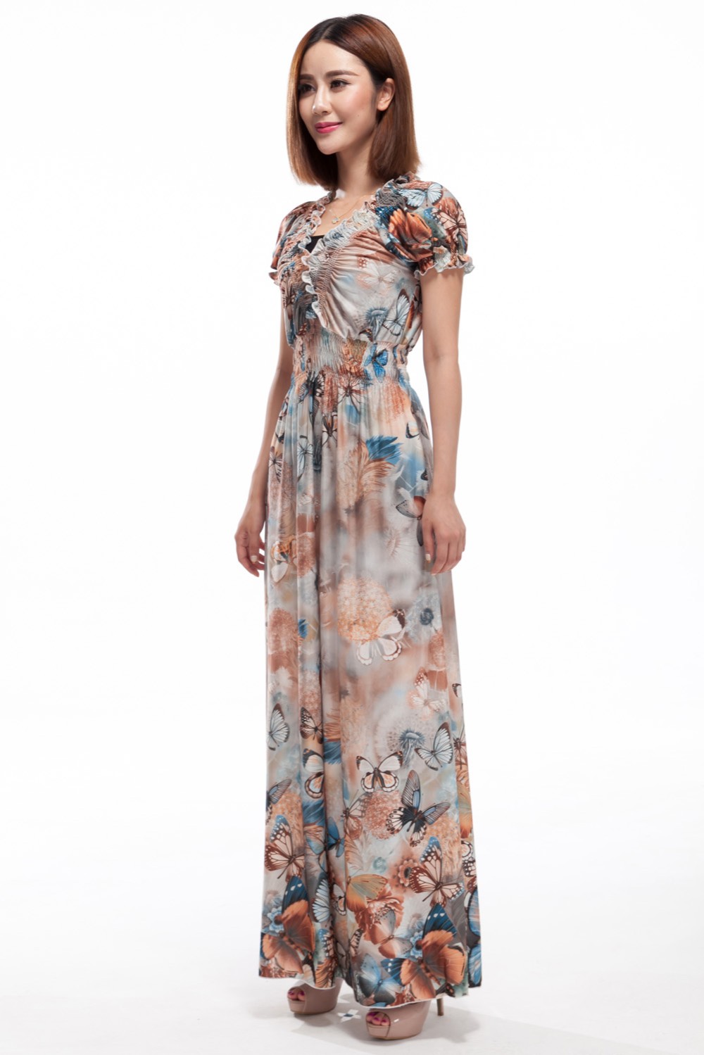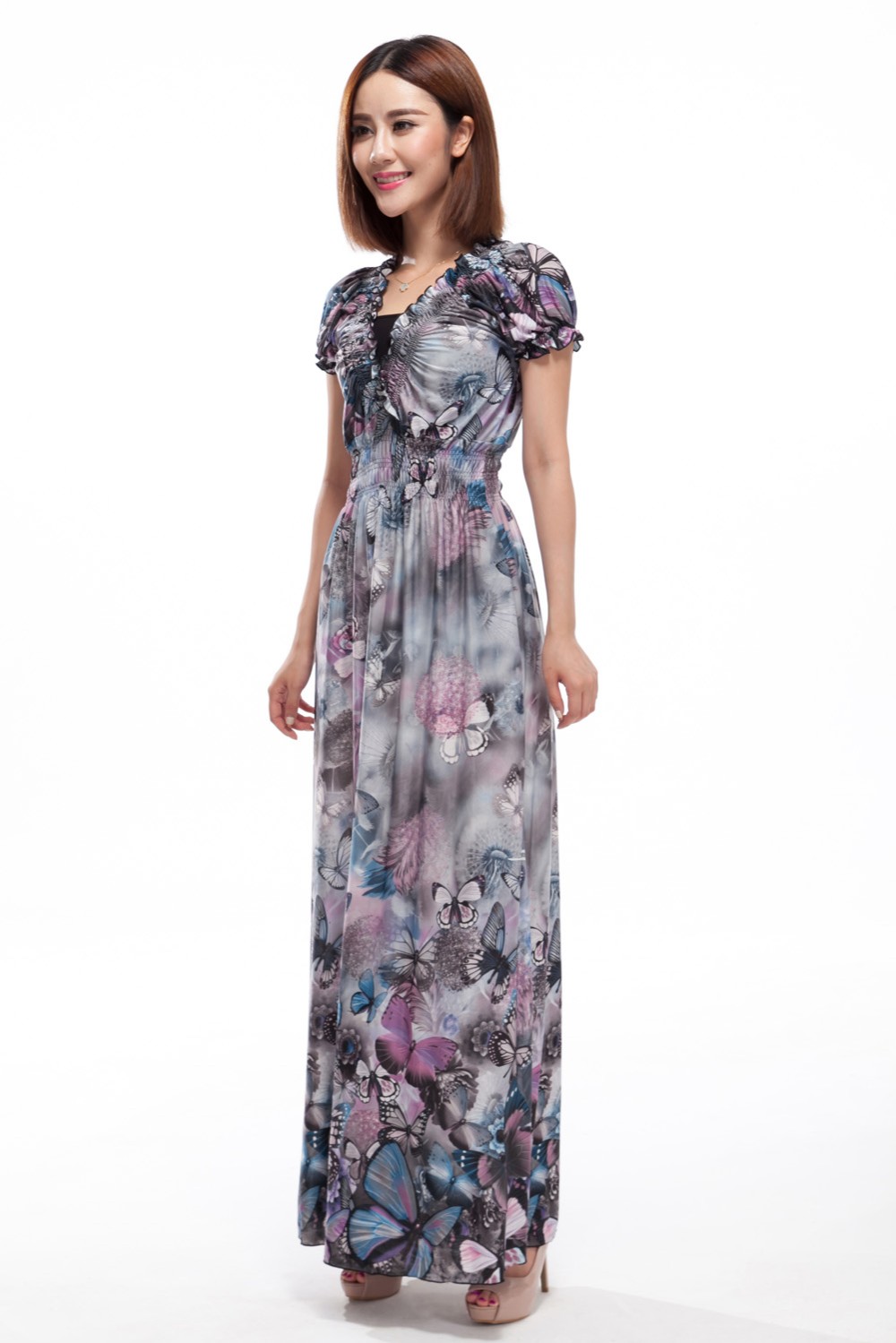 Women Summer Dress Butterfly Printed Bohemian Dresses 5XL 6XL Plus Size Dress Ruffles Long Maxi Dress