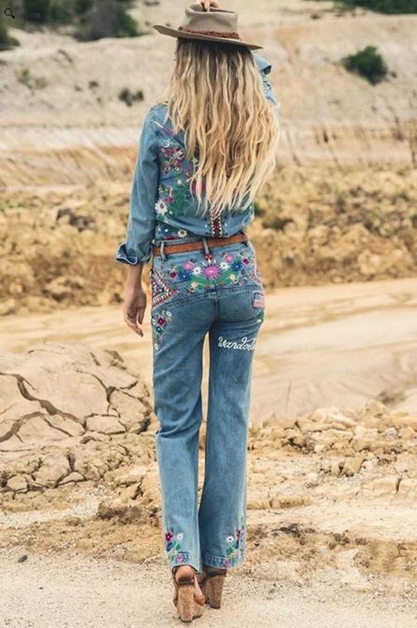Women embroidery hippie style denim shirts floral boho jackets fashion denim jacket vintage bohe hippie chic long sleeve jacket