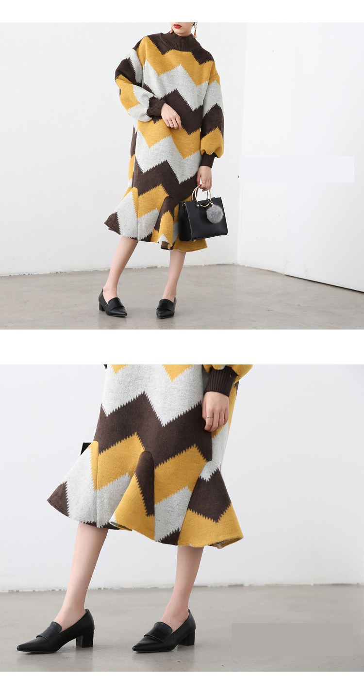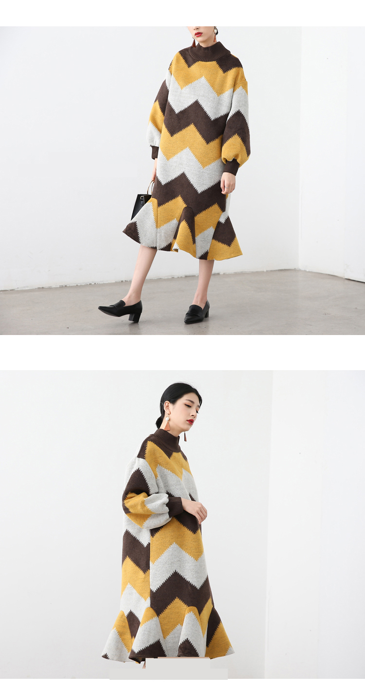 [XITAO] Europe and United States 2016 new autumn winter contrast color Hedging hem dress casual female wave pattern dress HRG008
