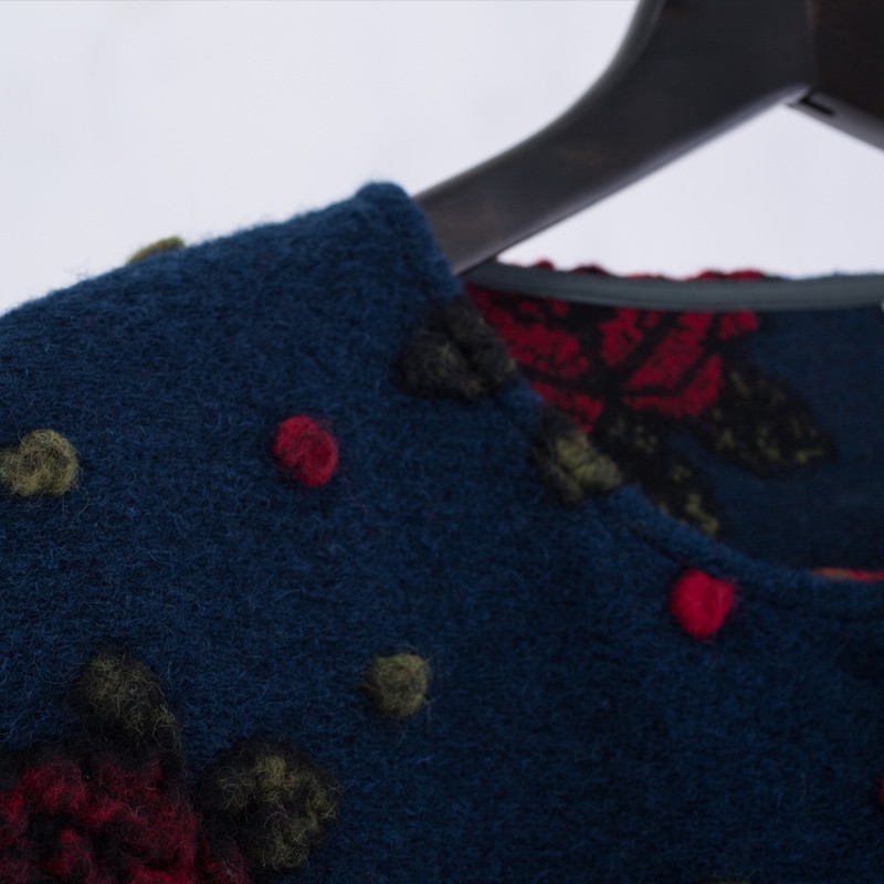 XianRan Women Wool Coat Winter Long Loose Floral Dot Edge Plus Size Overcoat High Quality Free Shipping