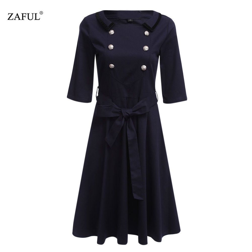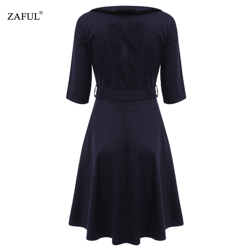 ZAFUL New Women Retro Dress Audery Vintage Elegant 1950S 60S half Sleeve Big Hem button Party Dresses Feminino Vestidos