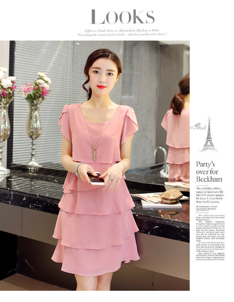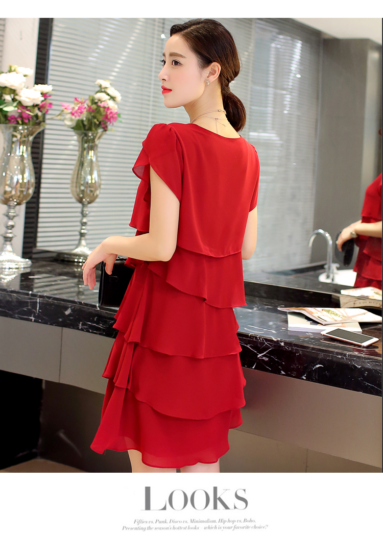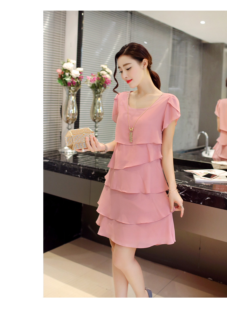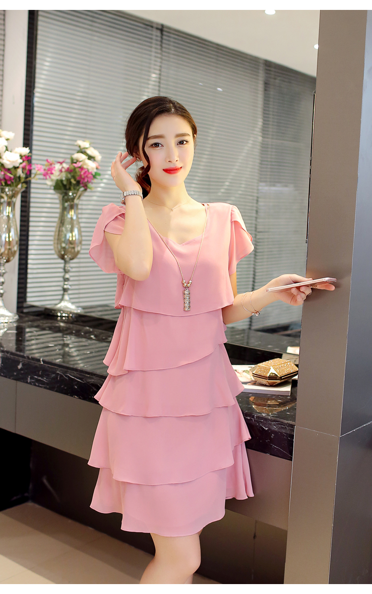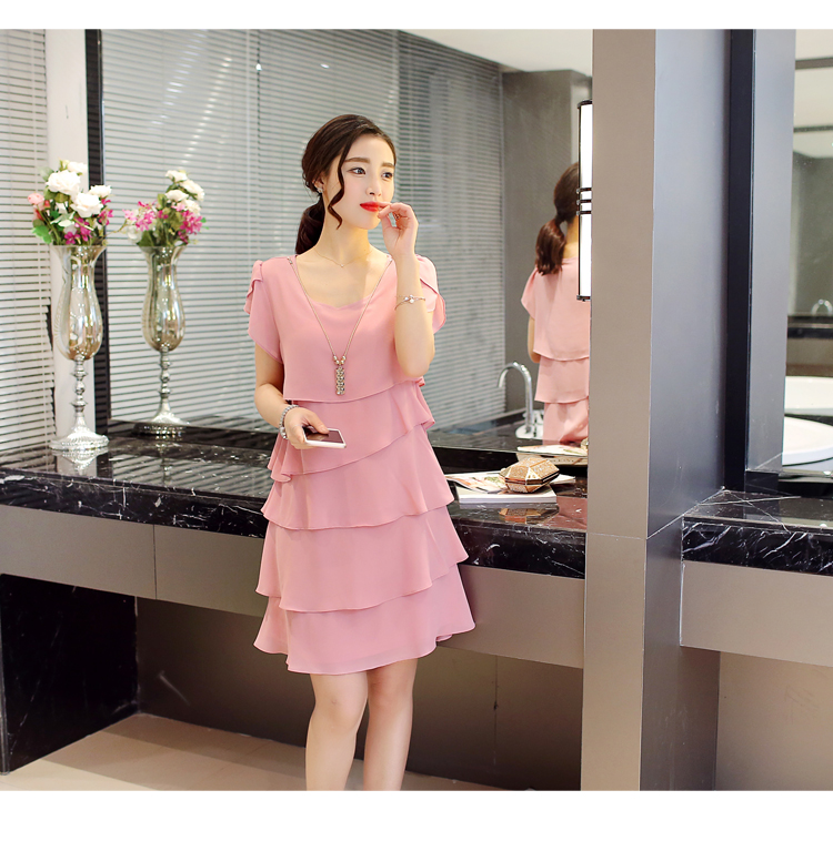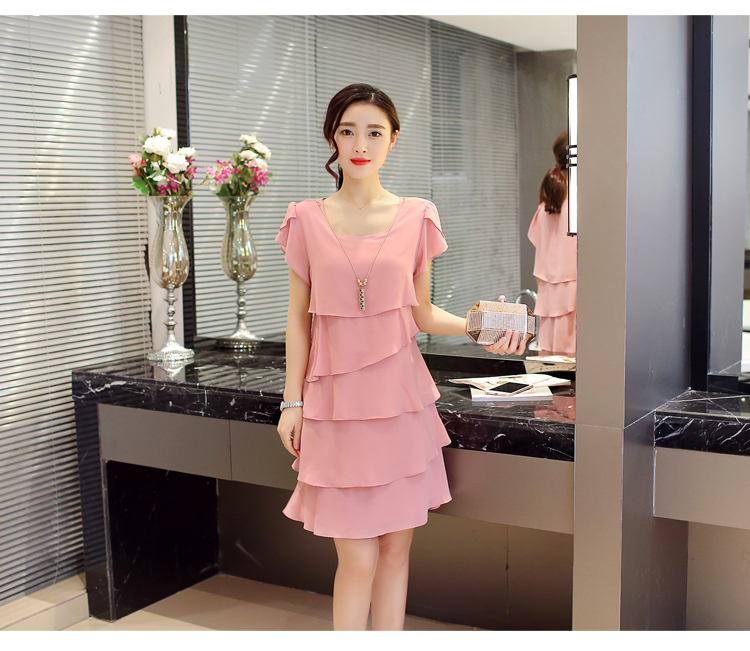 alibaba-express uk free shipping women dress plus size 2016 summer loose cover belly thin vestidos layers chiffon cake dress