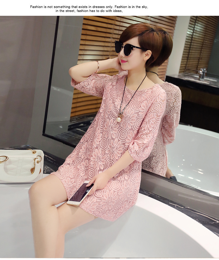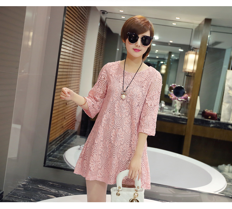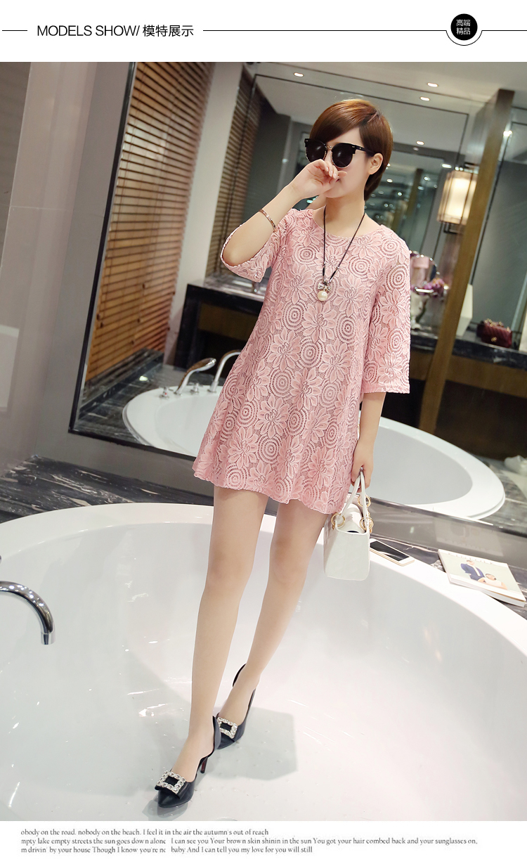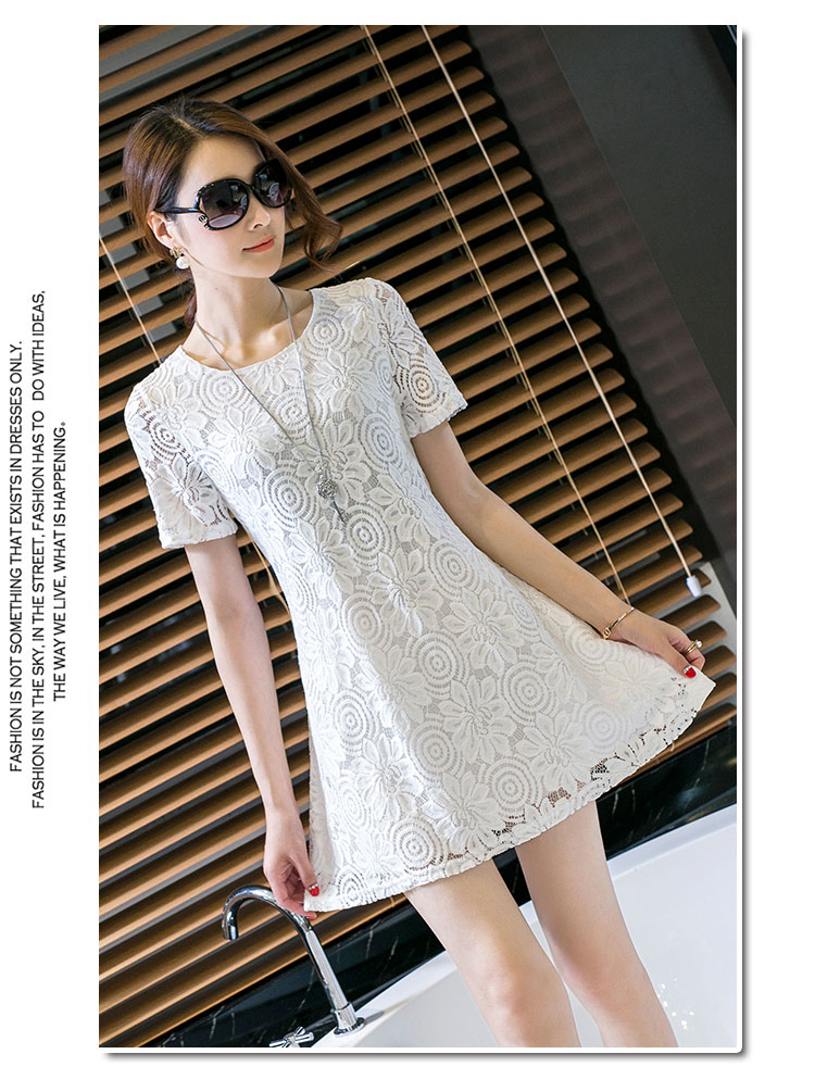 aliexpress uk wholesale 2016 new summer Korean women loose short cute lace dress white pink plus size shirt dress women clothes