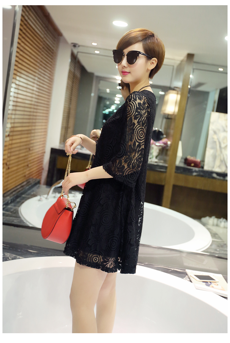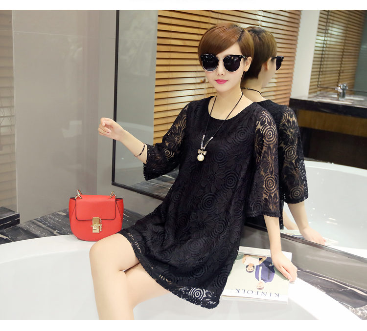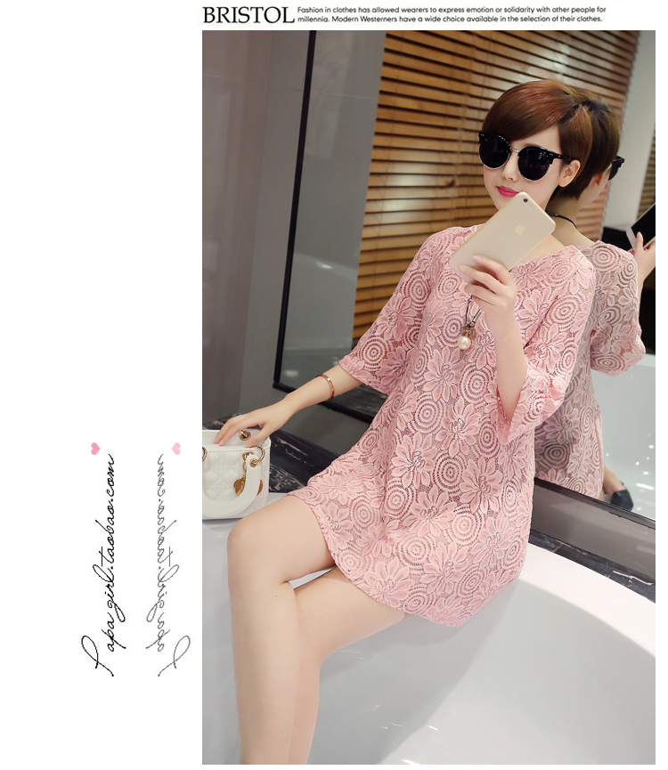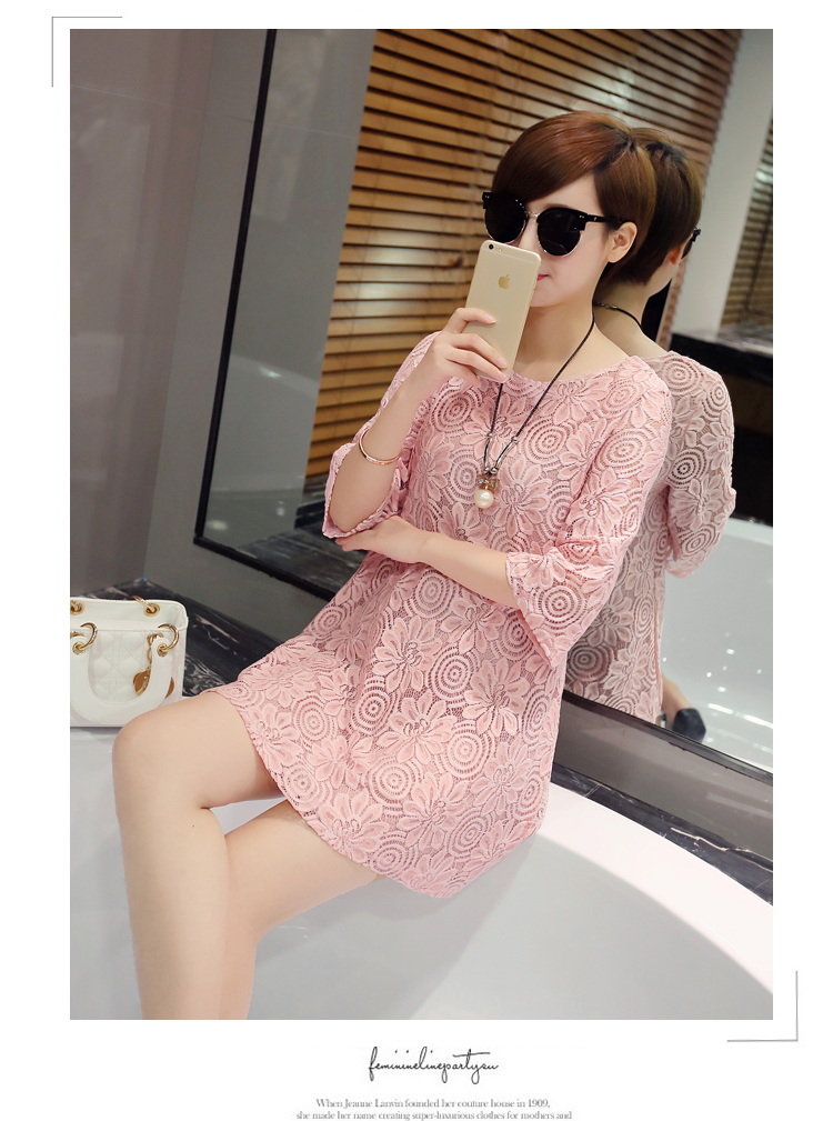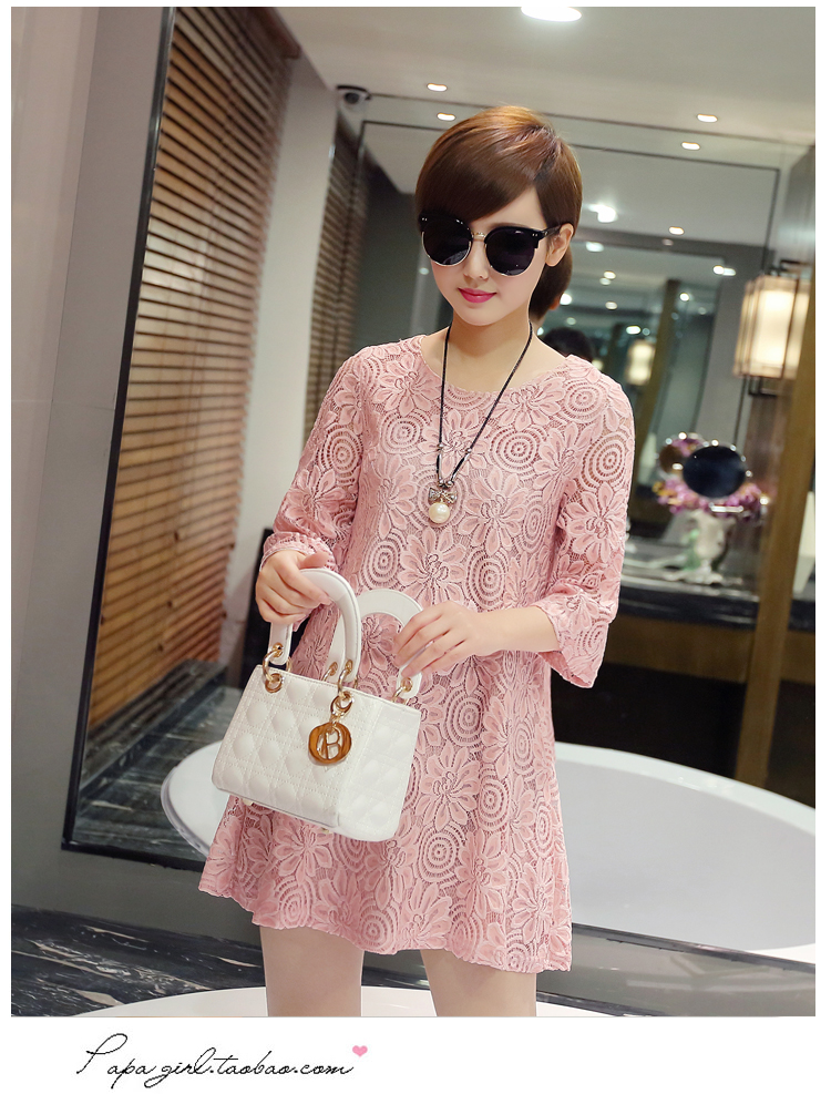 aliexpress uk wholesale 2016 new summer Korean women loose short cute lace dress white pink plus size shirt dress women clothes