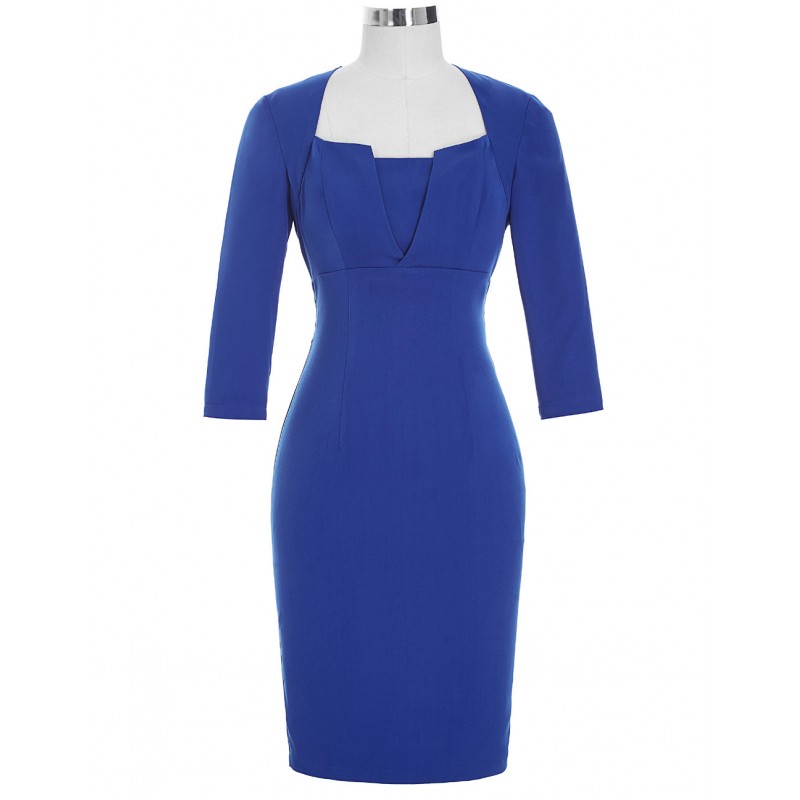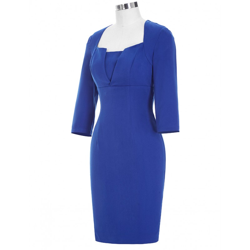 3/4 Sleeve Pencil Dress To Work 2016 Autumn Elegant Women Business Vestidos Solid Color Tunic Bodycon Sheath Dresses Plus Size