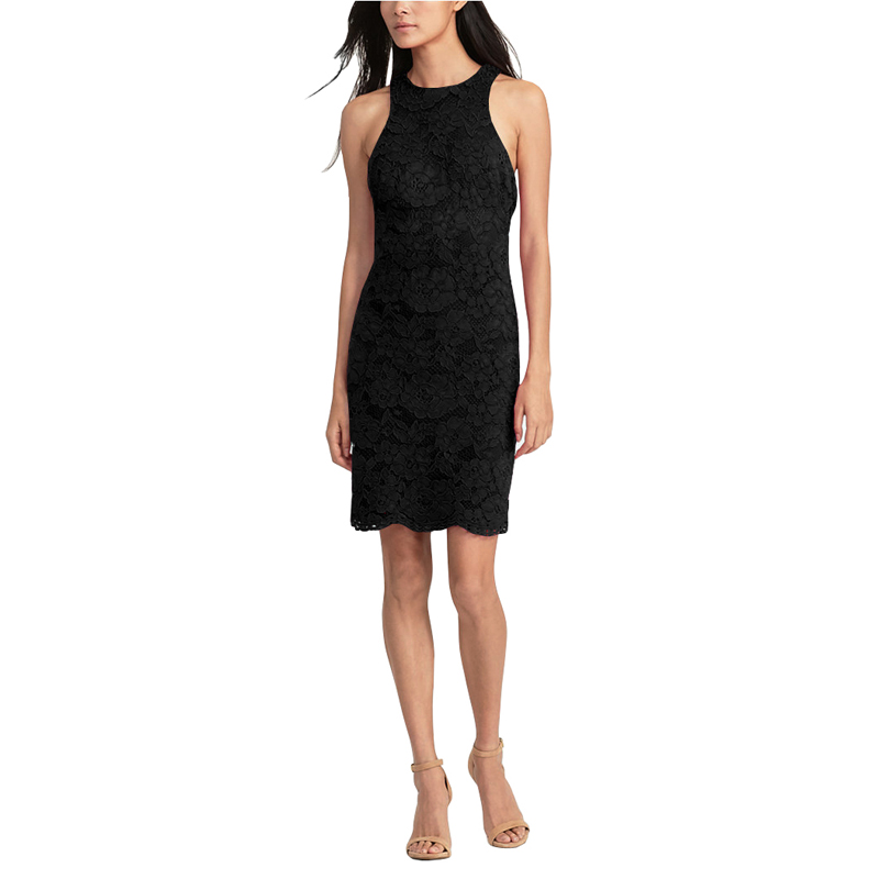 Berydress Elegant Womens Sleeveless O-neck Tank Sheath Bodycon Slimming Knee-length Black Casual Lace Dresses Short on Sale