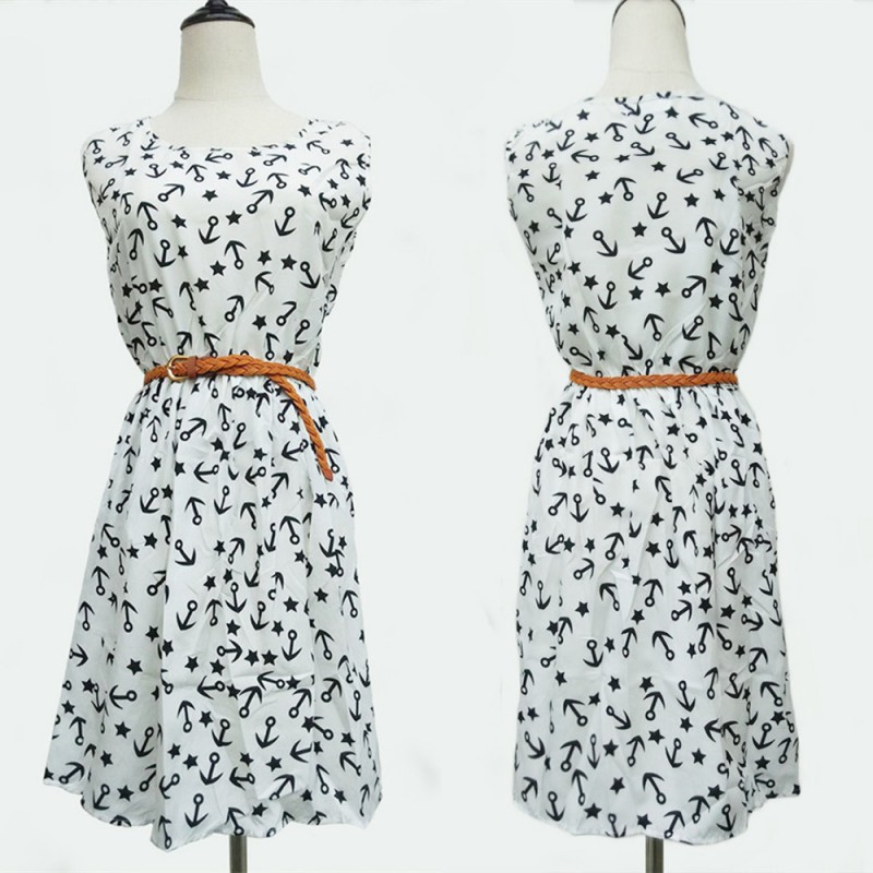 F&H Brand S M L XL XXL 20 Colors Fashion Women New Sleeveless Round Neck Florals Saias Femininas Waistband Print Dress