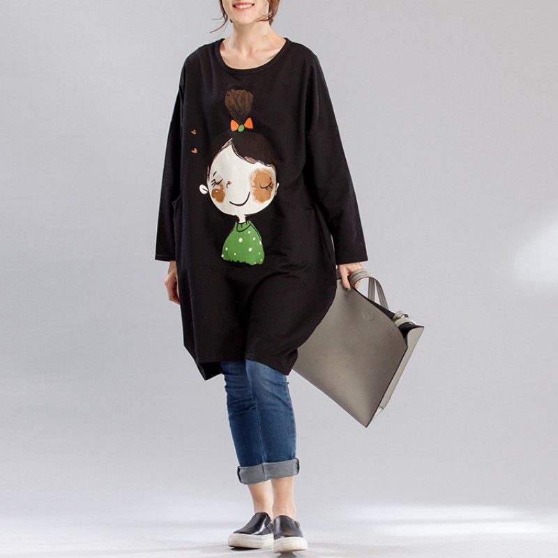 F&je New 2017 Spring Women's Large Size Printing Loose Dresses Femme Casual Clothing Fashion Women Plus Size Dresses J007