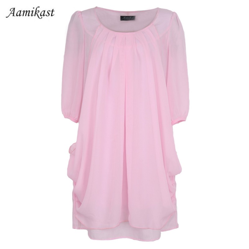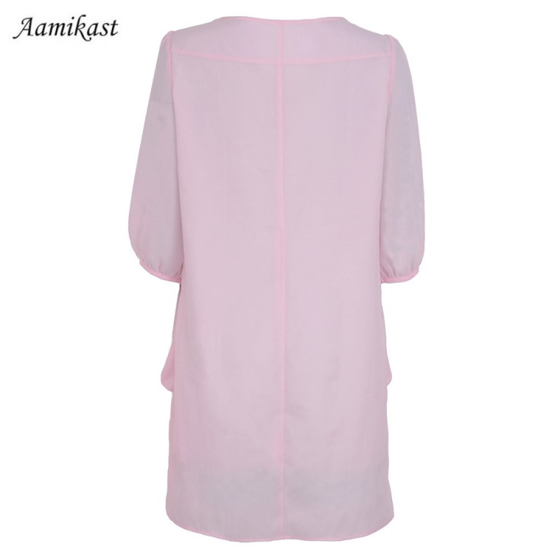 New Top Fashion Hot Seling O-neck Middle Sleeve Summer Sexy women Chiffon Casual Loose Cocktail Mini Dress Free Shipping