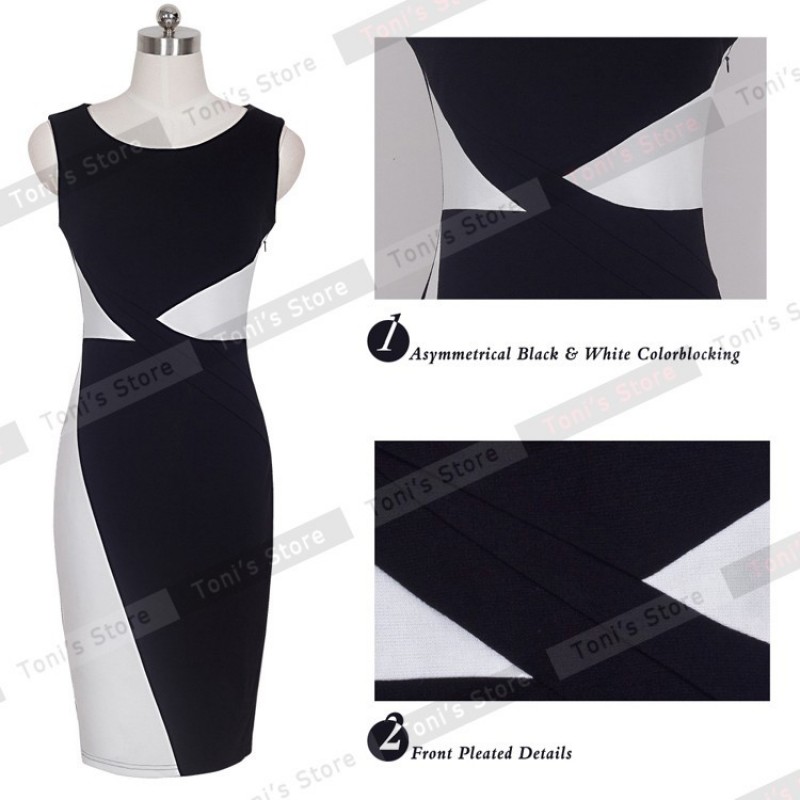 Nice-Forever Pleated fashion Women Optical Illusion Color-block Sleeveless Bodycon Business Evening Party Pencil Dress b65