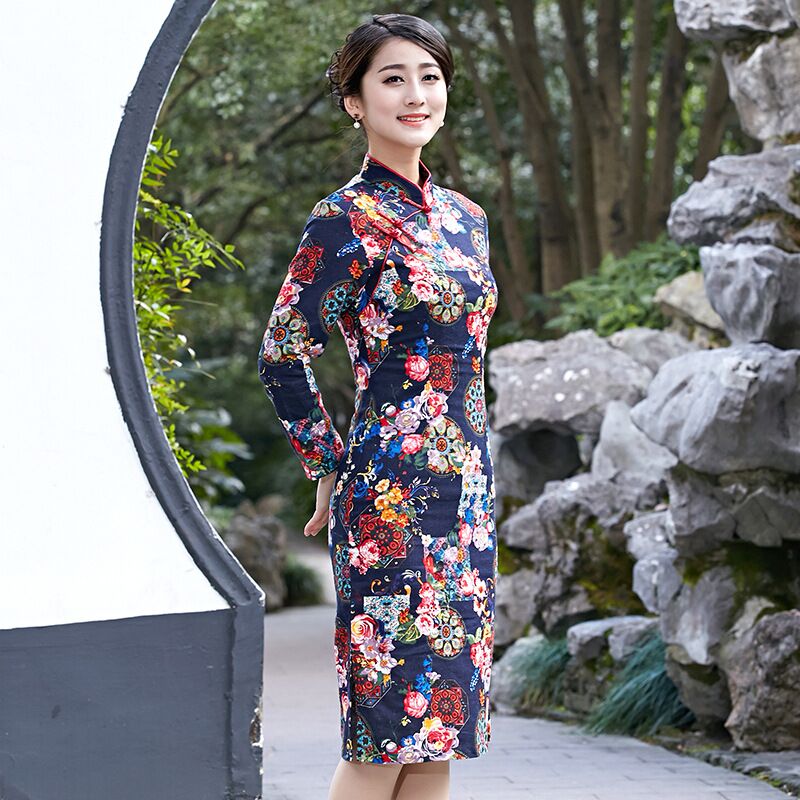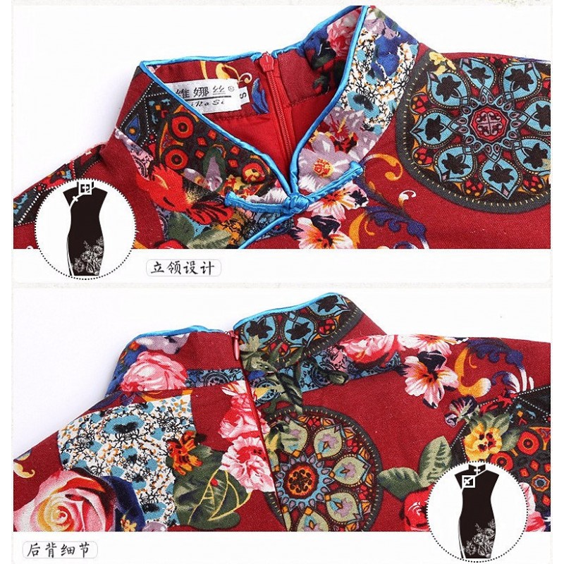 Novelty Stylish Chinese Style Dress Ladies' Cheongsam Elegant Slim Linen Cotton Knee-Length Qipao Size S M L XL XXL XXXL 2528-1