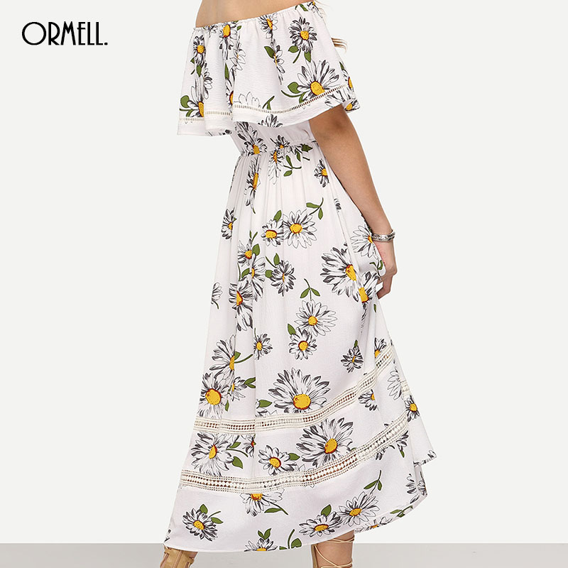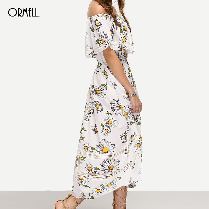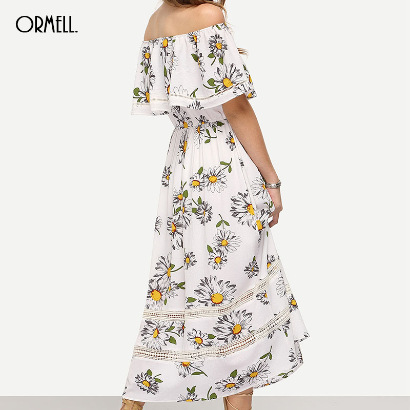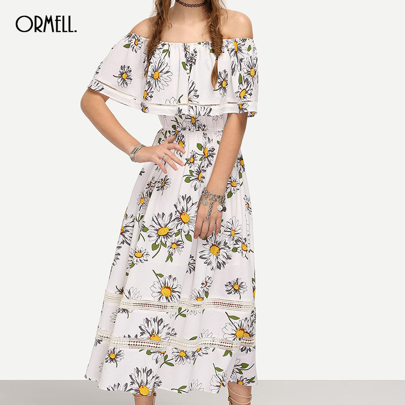 ORMELL Women Sexy Slash Neck Floral Dress Short Sleeve Lace Design Ladies Summer Autumn Fashion Casual Dress Vestidos