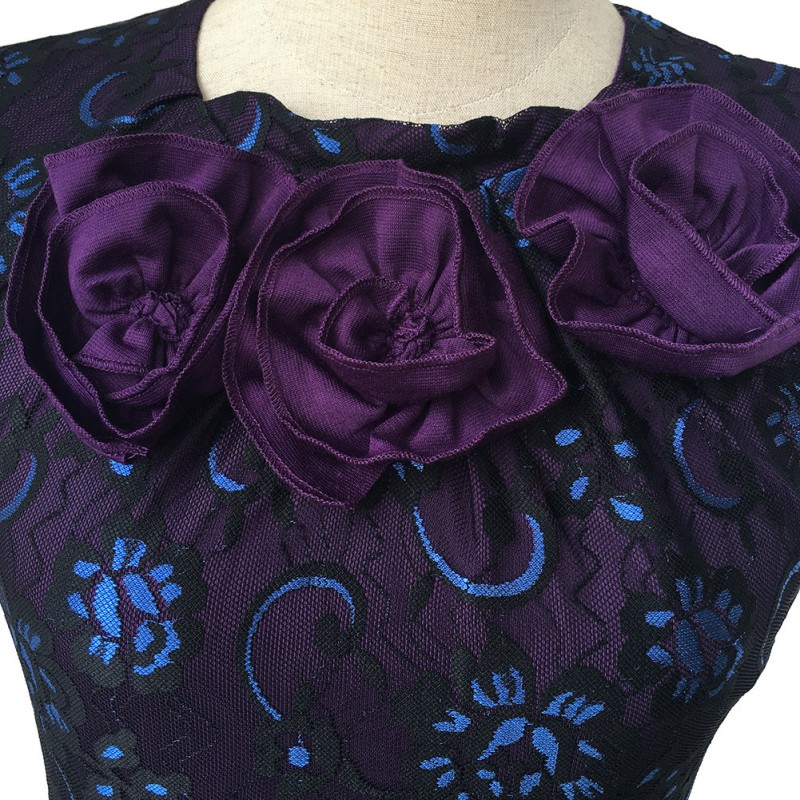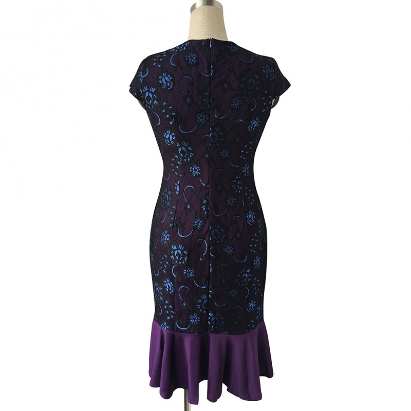 Oxiuly Womens Elegant 1950s Vintage Purple Flower Lace Fitted Stretch Bodycon Formal Party Sheath Wiggle Mermaid Dress