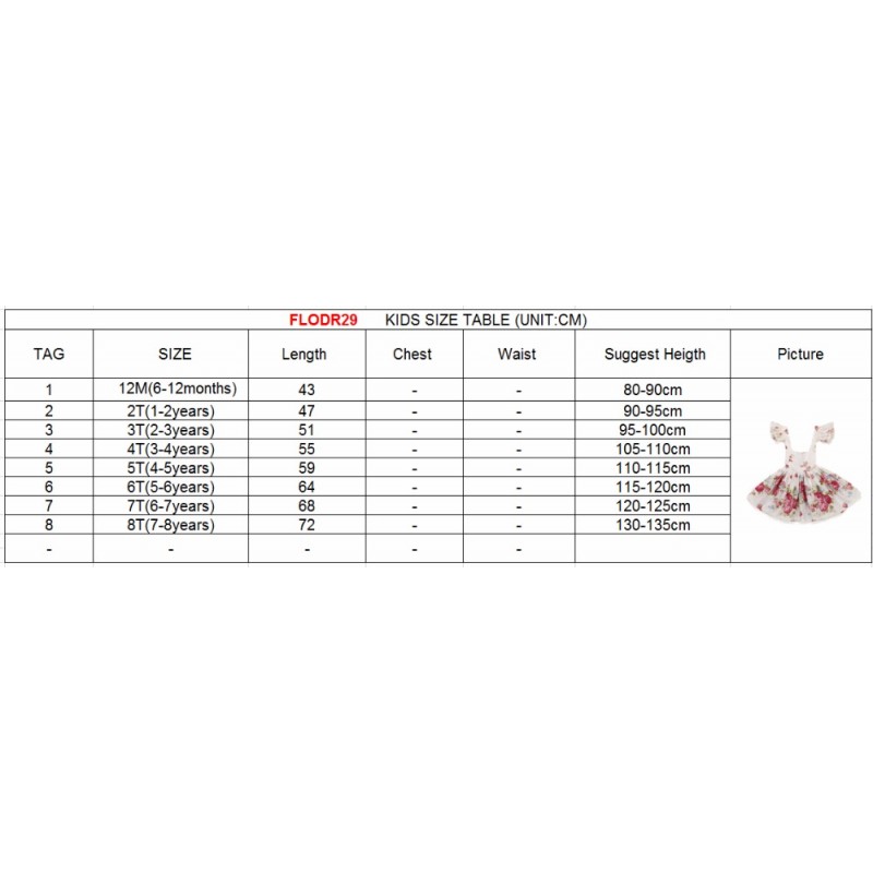 | FLODR29 KIDS SIZE TABLE (UNIT:CM) | |||||