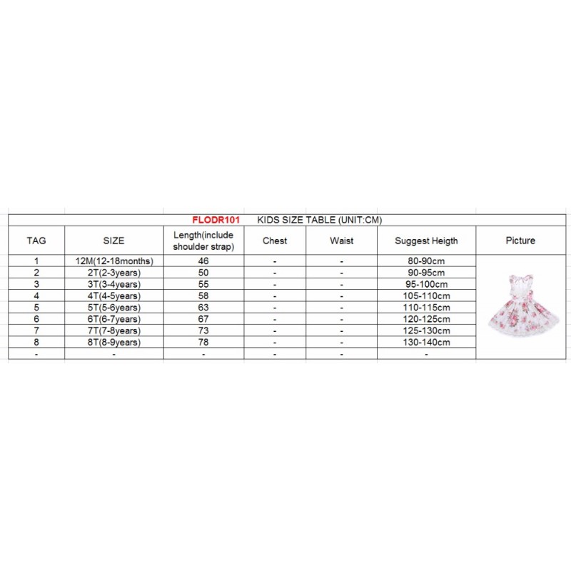 | TAG | SIZE | Length | Chest | Waist | Suggest Heigth |