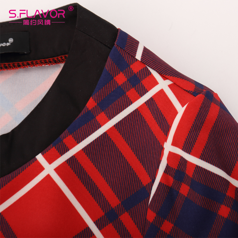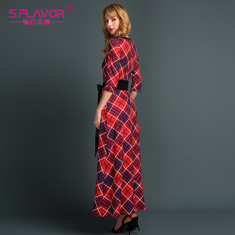 S.FLAVOR Brand women plaid printing long dress Russian style women patchwork loose floor-length vestidos Spring summer dress