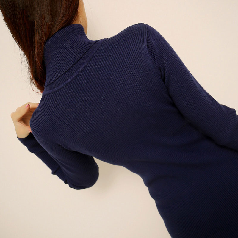 Turtleneck Sweater Dress Autumn Winter Brief High Neck Long Sleeve Stretch Bodycon Dress Knitted Sweater Dresses For Women