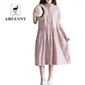 ARFANNY dresses spring new women. Forest art leaves floral loose Loose cotton dress summer Small flower belt clothing dresssUSD 10.93/piece