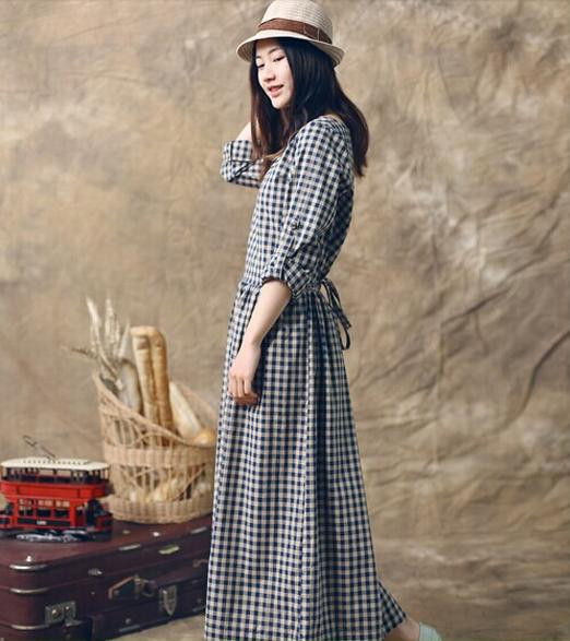 dresses New Dress Size loose cotton plaid art dress female /ultra-thin fabrics/ conjoined cotton casual studentUSD 14.76/piece