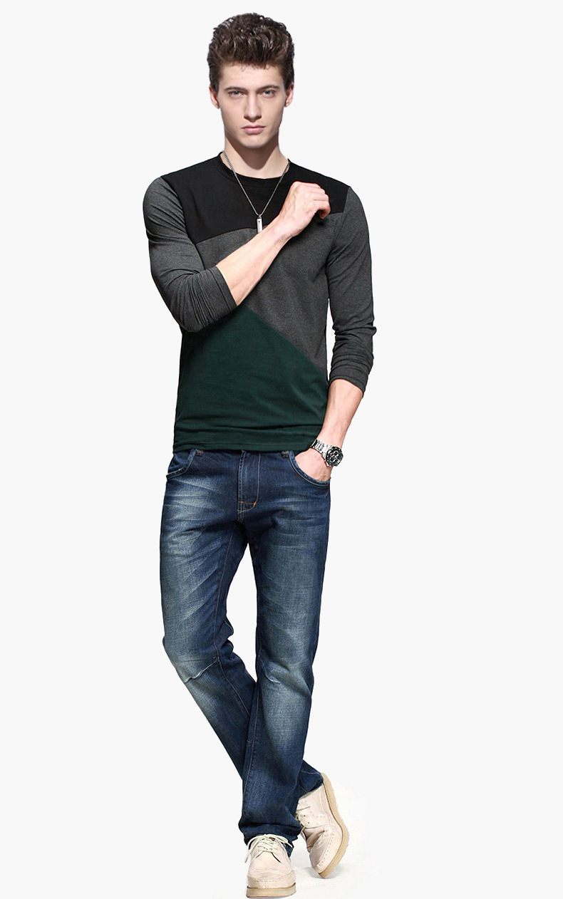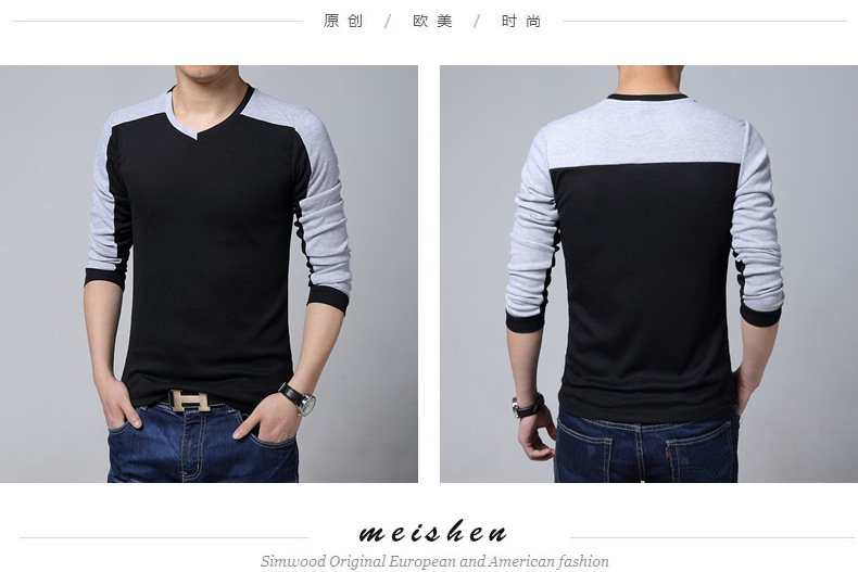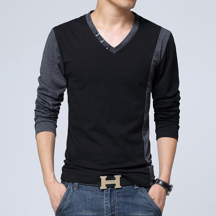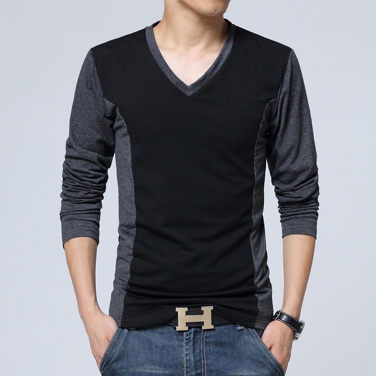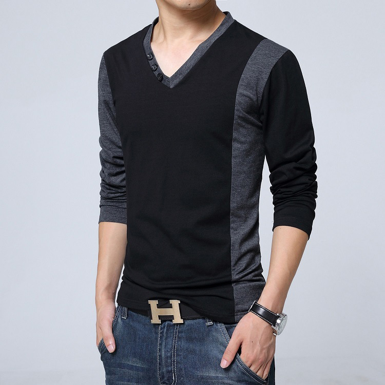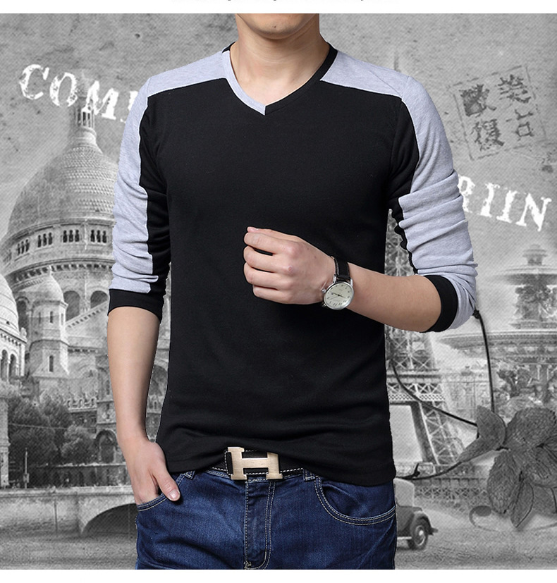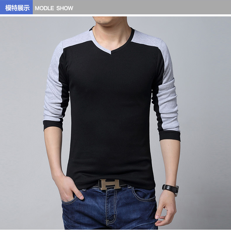 men's cotton t-shirts new arrival large size long sleeve patchwork slim T-shirt homme men clothing casual V-neck Tops & Tees