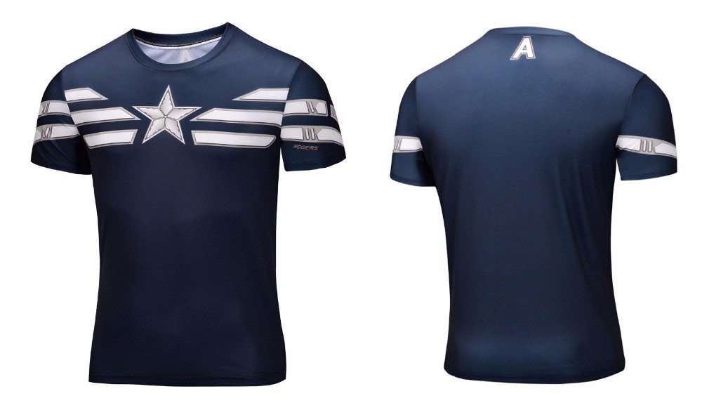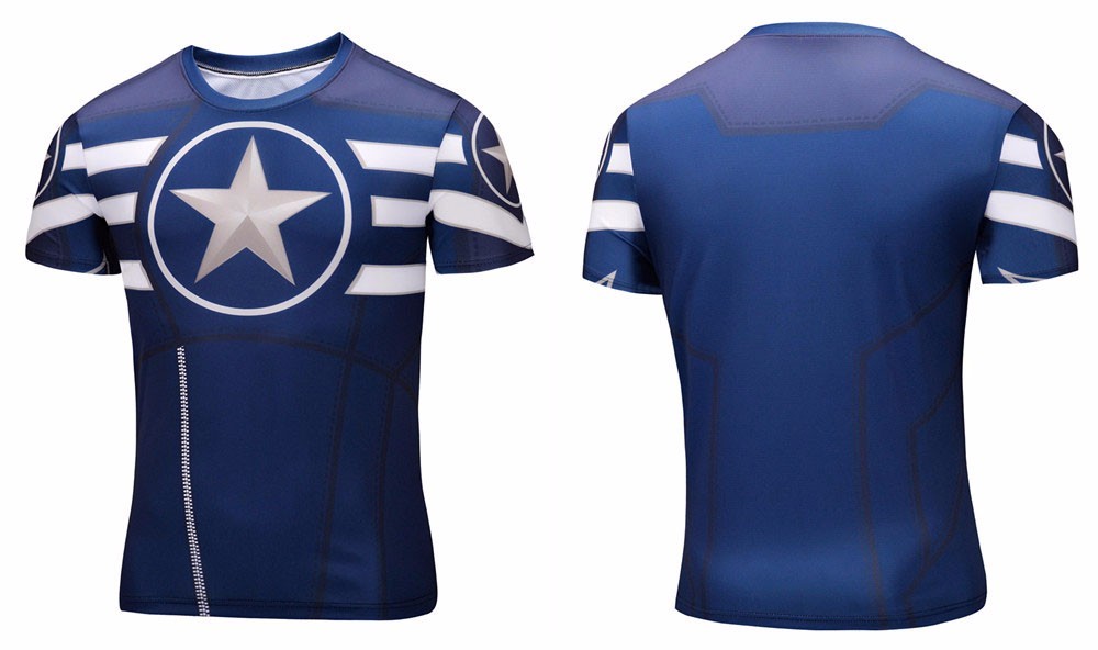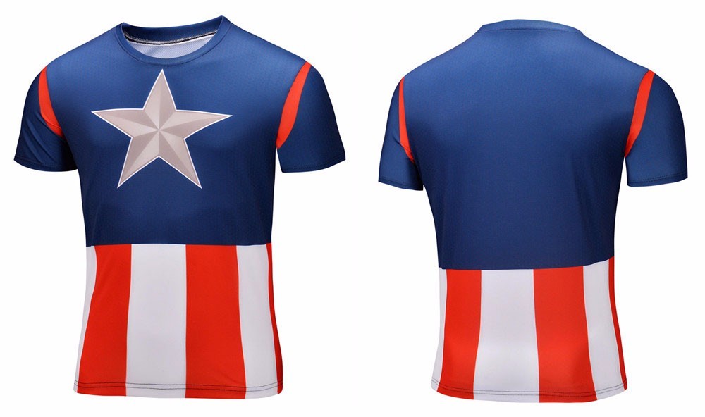 new style 2016 Marvel Captain America Super Hero compression tights Short sleeve 3D T shirt Men large size 6XL 21 paragraph