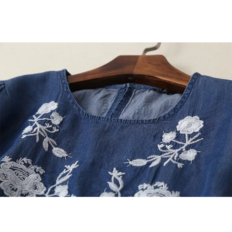 - Women Floral Embroidered Tencel Denim Dress