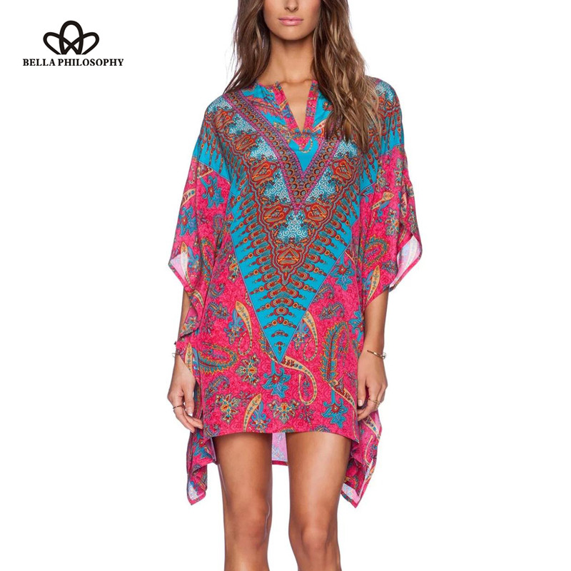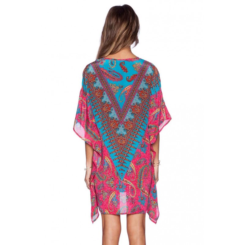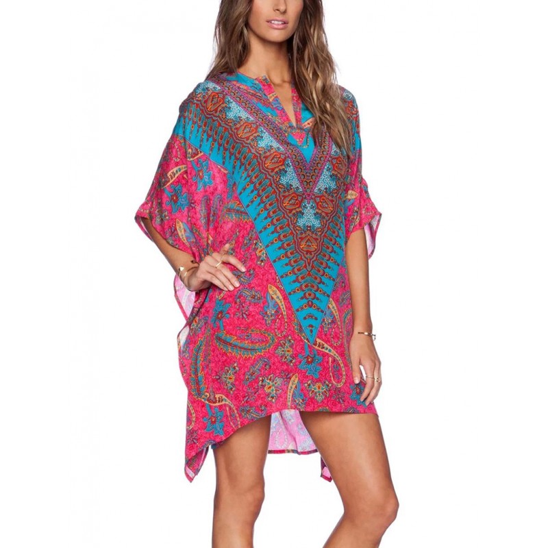 2017 spring summer Bohemia new women's clothing wholesale rose red color floral placement print asymmetric causal dress